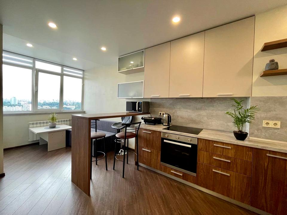 Простора однокімнатна квартира з якісним ремонтом. Затишна спальня з великою шафою купе та двоспальним ліжком з ортопедичним матрацом. Функціональна простора кухня з зоною відпочинку. Диван розкладається.