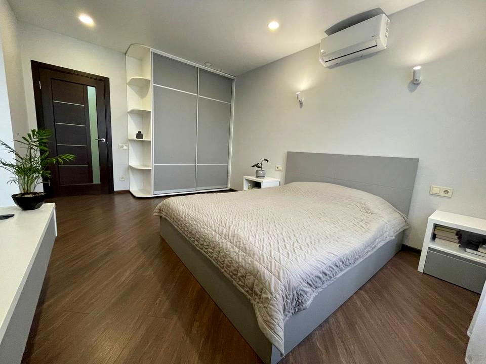 Є посудомийка, мікрохвильова піч, холодильник, духова шафа, варильна поверхня та кондиціонер. Великий санвузол з душовою кабіною. В прихожій міська шафа купе до стелі. Квартира дуже світла, тепла та простора. Є балкон.