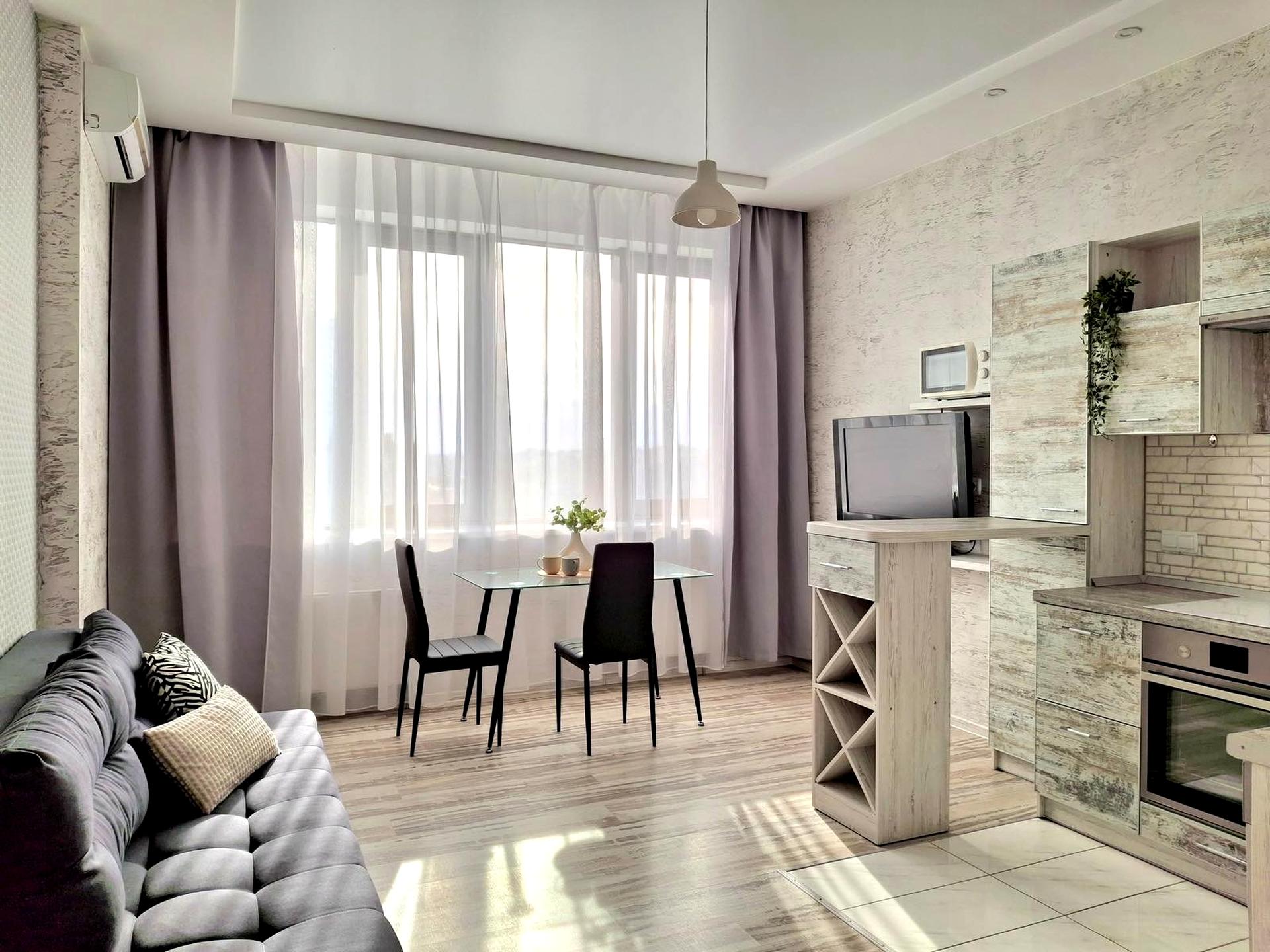 В преміальному ЖК River Stone в довгострокову оренду здається сучасна та затишна однокімнатна квартира. Простора, наповнена світлом в ній продумано все до дрібниць: вмістка гардеробна, простора кухня з обіднею та ТВ зонами, затишна спальня з комфортним двоспальним ліжком, білосніжна ванна для вашого релаксу після робочого дня.