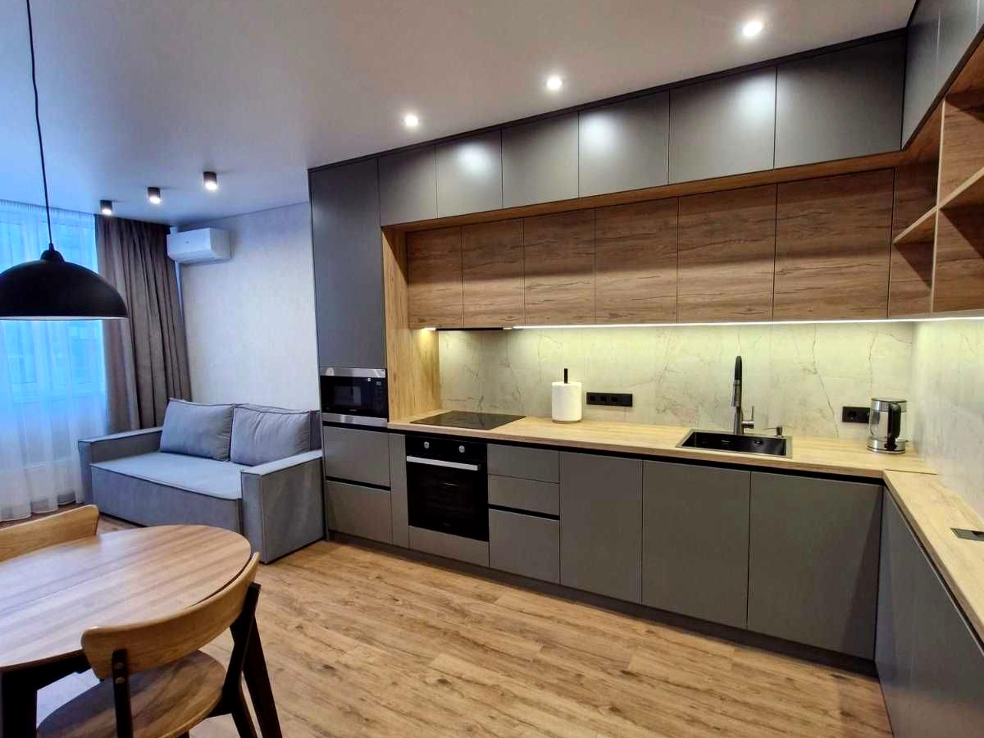 Повністю укомплектована меблями та технікою: холодильник, духовка, варильна поверхня, посудомийка, міквохвильовка, пральна машина, сушильна машина, пилосос, бойлер, тепла підлога у санвузлі, два кондиціонера, два телевізора (50 діагональ).