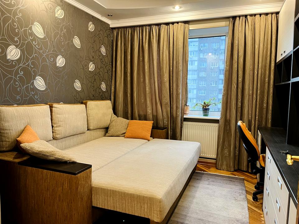 Дві окремі кімнати, хороший ремонт, є вся необхідна мебель та техніка: тепла підлога кухня та ванна, кондеціонери, пральна машина, велика шафа купе та інші шафи, телевізор, інтернет, роутер, холодильник, варильна поверхня, духовка, електрочайник, спортивний куток, 2 зручних великих дивани які розкладаються, письмовий стіл, домофон, лічильники на воду, електрику, та інше..