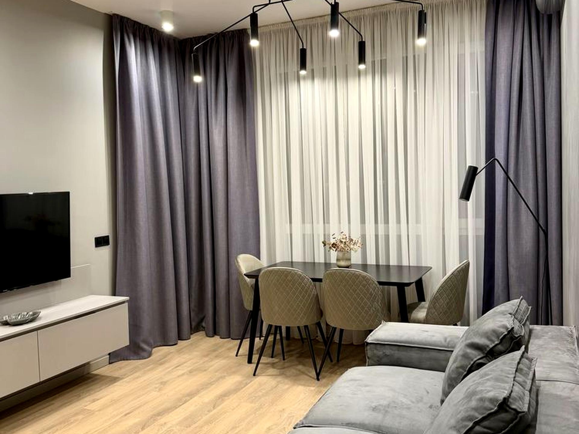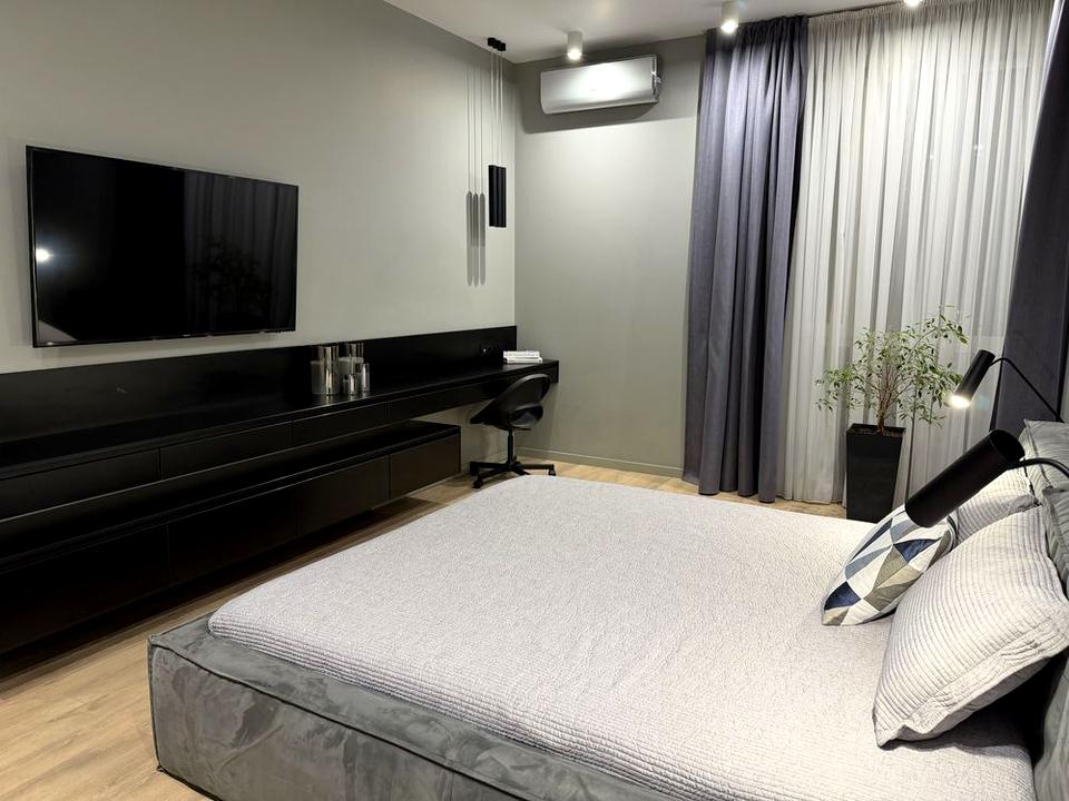 Квартира тепла, світла, простора, в гарному стані, чиста та доглянута, з сучасним ремонтом та всією необхідною технікою (є пральна машина, холодильник з морозильною камерою, варильна поверхня, духова шафа, посудомийна машина, кондиціонери, телевізор, пилосос тощо) та меблями, інтернетом. У ванній кімнаті тепла підлога. Є простора гардеробна для одягу та зберігання речей.