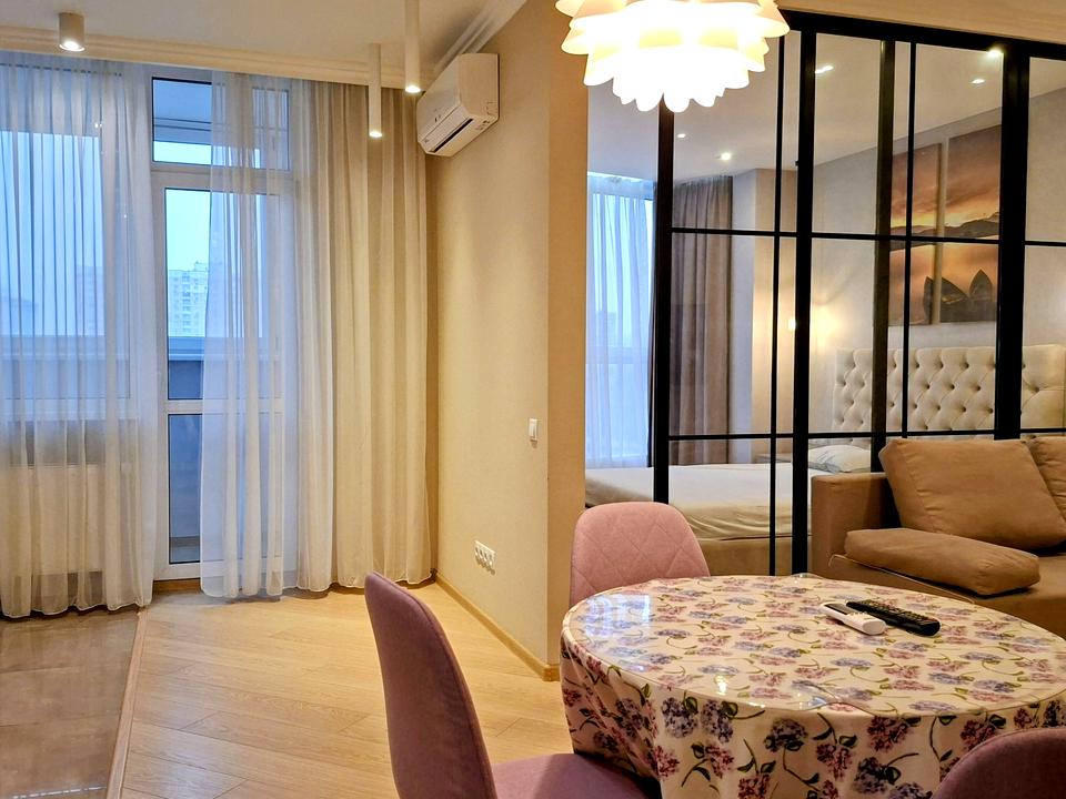 В квартирі 1 кімната, Технологія будівництва - Монолітно-каркасна, Тип будинку - Спец. проект. Вид з вікон у двір. Планування кімнат Роздільне. Немає газу, кухонна плита електрична. Гаряча вода - централізована. Опалення центральне. Суміщений санвузол, Туалет/ванна. Є балкон. В квартирі є Телевізор, Кабельне ТБ, Шафа, Ліжко, Підігрів підлоги, Кондиціонер, Пральна машина, Холодильник, Посудомийна машина, Посуд, Лічильники. Будинок побудований в 2016 році. Загальний стан квартири - З ремонтом. Консьєрж. Поруч є зупинки, розважальні заклади, супермаркет, парк, річка/озеро. Надання документів. Інтернет дротовий (кабельний). Працює без світла - вода, опалення, інтернет. Комісія за послуги 50 %