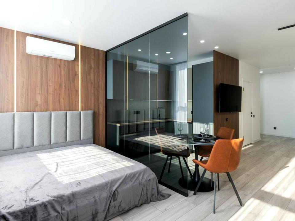 - Квартира з зонуванням: зона відпочинку, кухня-їдальня, прихожа, просторий санвузол
