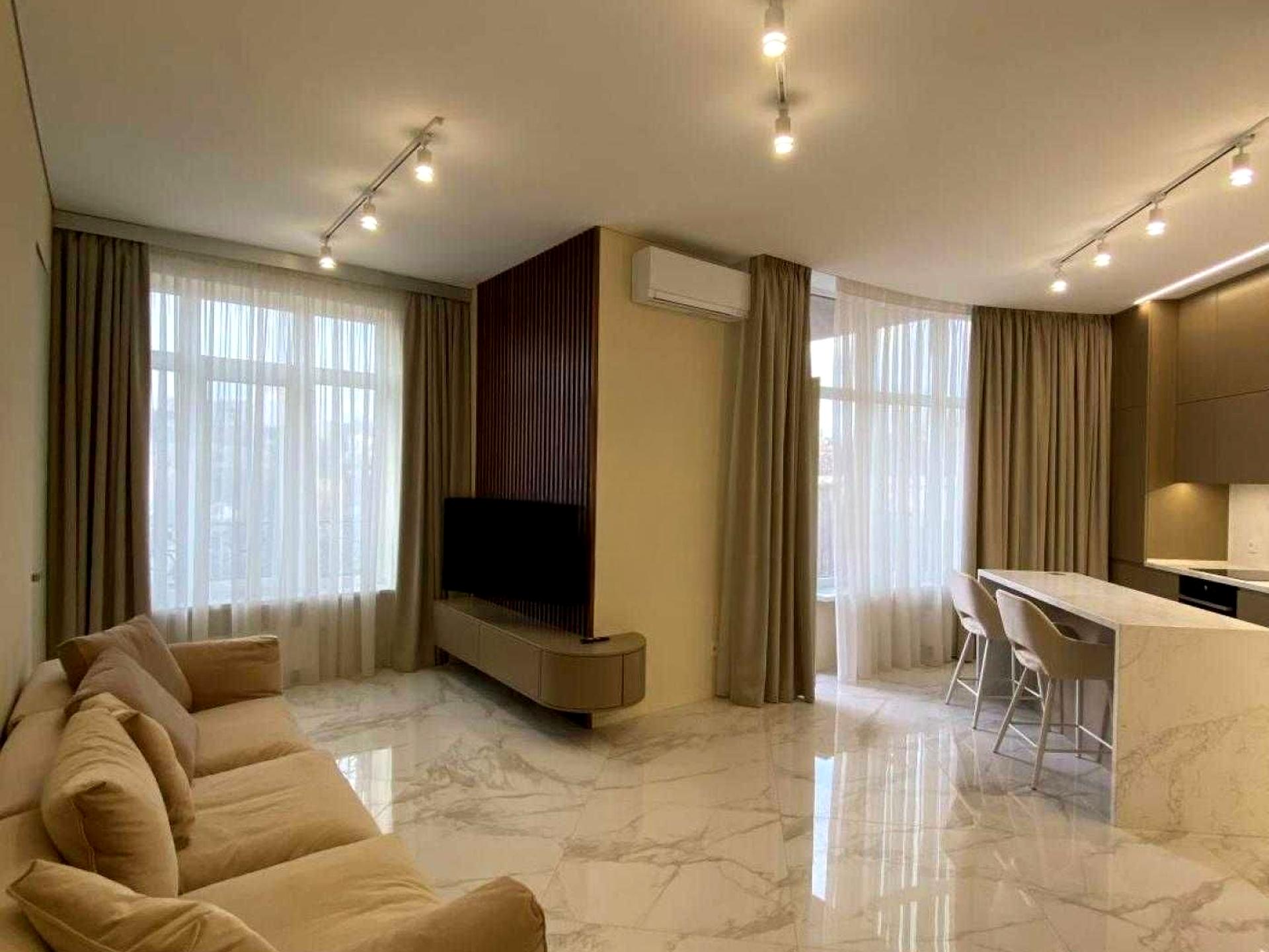 Зроблено дизайнерський ремонт, укомплектований преміальними дорогими меблями та технікою.