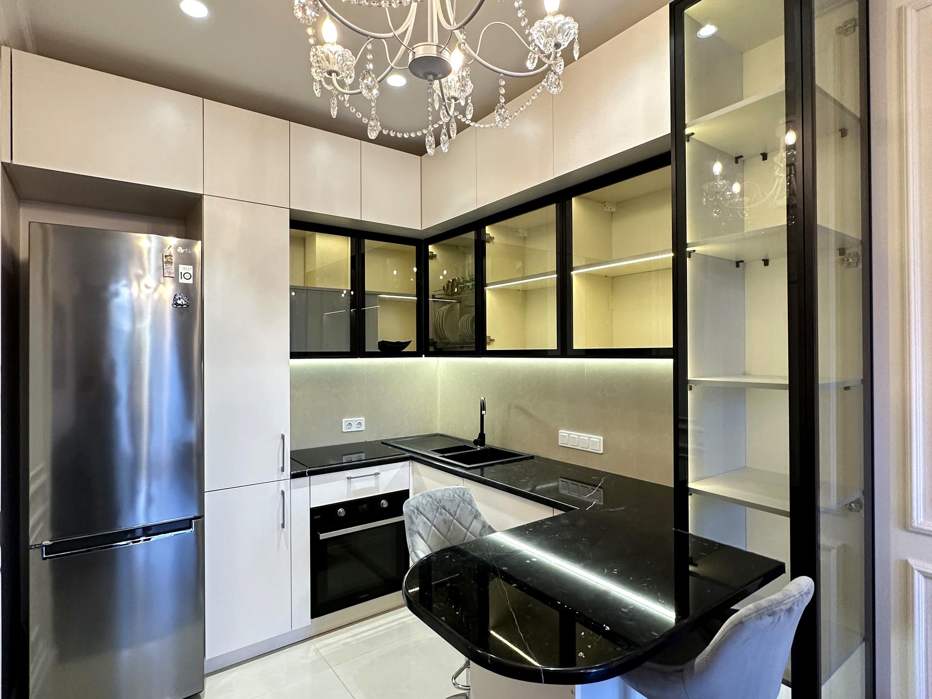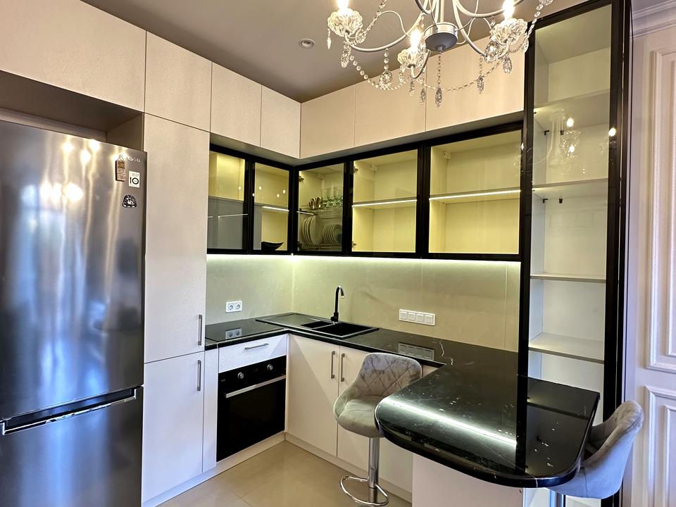Індукційна плита, кам'яне миття, тепла підлога, Спа-зона з ванною та окремим душем зі скляною перегородкою.