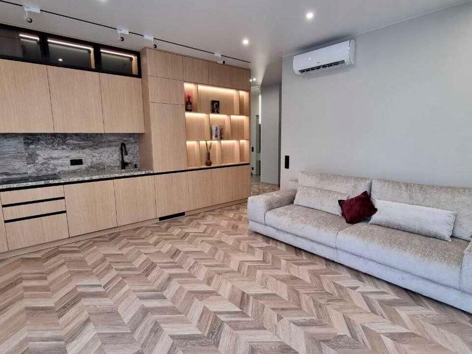 2 окремі кімнати + велика кухня-студіо, 2 санвузла. Свіжий якісний ремонт та меблі, повністю укомплектована технікою (2 великі плазми, пральна та посудомийна машини, бойлер, мікрохвильовка, духовка, варочна, холодильник, морозилка, кондиціонери, праска, електрочайник, пилосос), постіллю, рушниками, посудом. Сейф. Підігрів підлоги. Вид з вікна і у внутрішній закритий дворик, і на Тріумфальну арку. Є паркінг під будинком