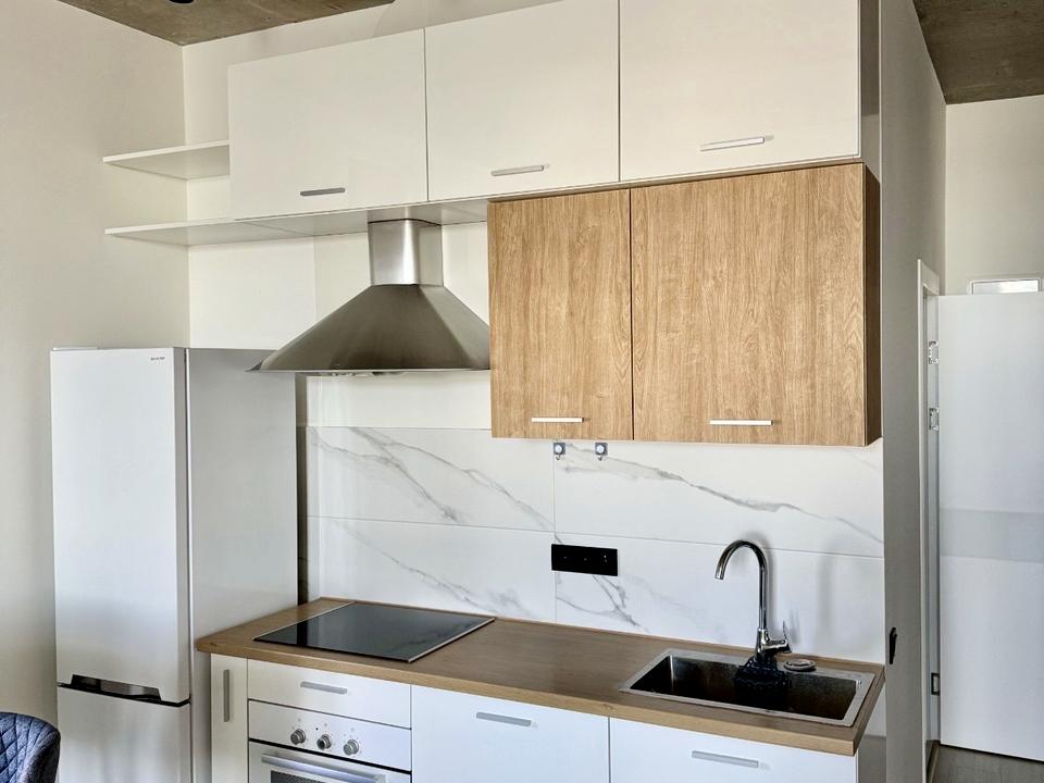 В квартирі 1 кімната, Технологія будівництва - Монолітно-каркасна. Планування кімнат Студія. Немає газу, кухонна плита електрична. Гаряча вода - електричний бойлер. Опалення центральне. Є балкон. У квартирі є Підігрів підлоги, Кондиціонер, Пральна машина, Душова кабіна, Холодильник, Мікрохвильовка. Будинок побудований в 2020 році. Загальний стан квартири - З ремонтом. Кількість санвузлів: 1. Інтернет оптоволоконний. Працює без світла - вода, опалення, інтернет. Тип кухні - кухня-студія. Кількість спален: 1. Комісія за послуги 50 %