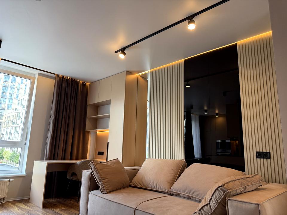 Ексклюзивна квартира з авторським ремонтом в елітному житловому комплексі «Файна таун», шикарний дизайнерський інтерєр, італійські меблі, сучасна техніка світових брендів ,є тепла підлога , вмонтована кавоварка , квартира площею 60м2.