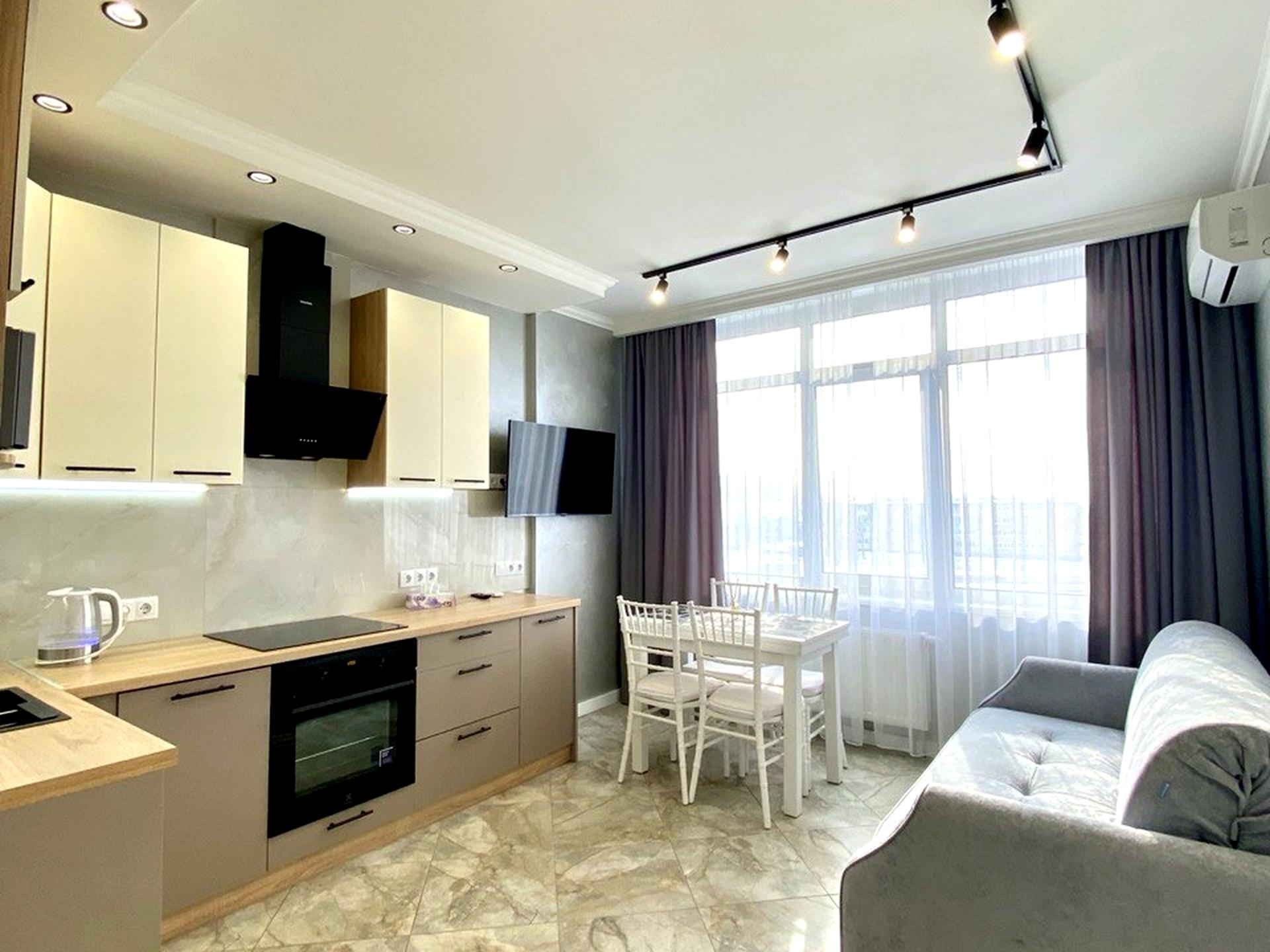 Пропонується стильна, затишна квартира з якісним сучасним ремонтом у комфортному житловому комплексі.