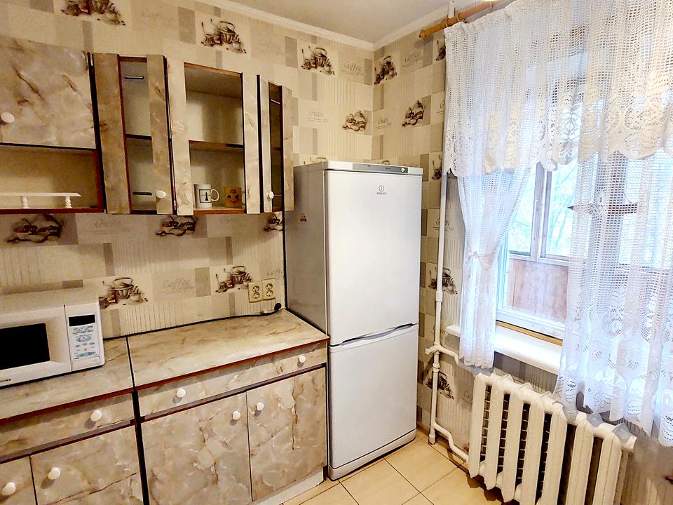 Затишна, тепла квартира на 4/9 поверсі, площею 34/14/6 кв.м. Обладнана меблями та необхідною технікою - газова плита, бойлер, пральна машина, холодильник, мікрохвильова піч.