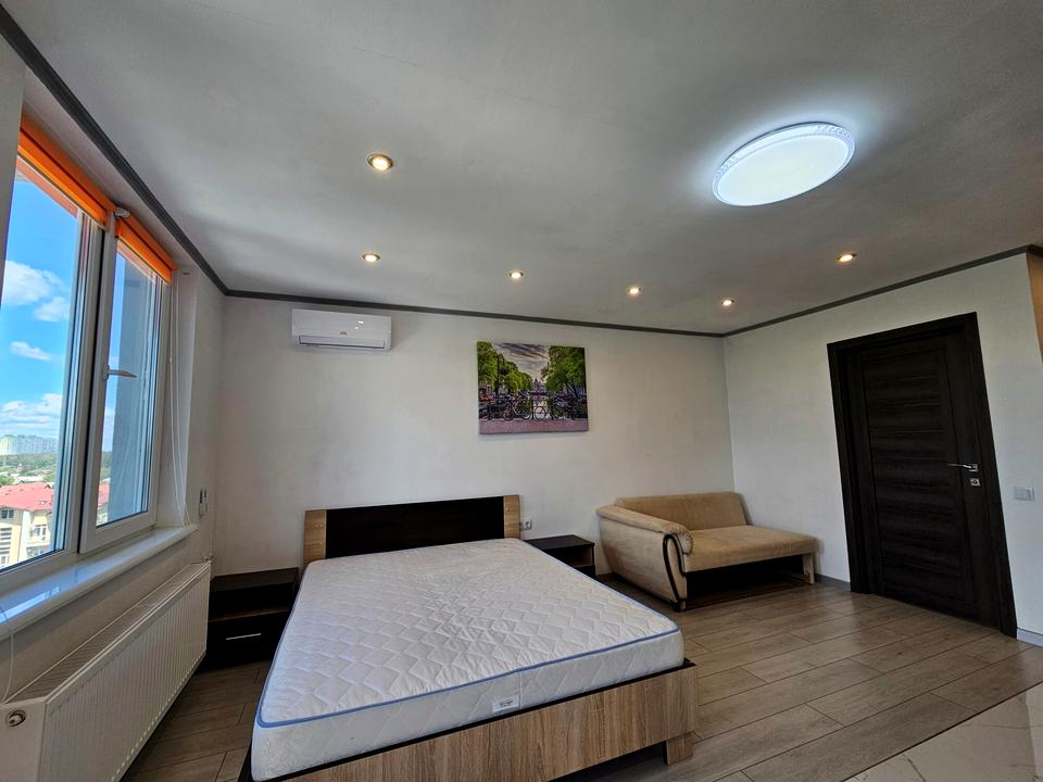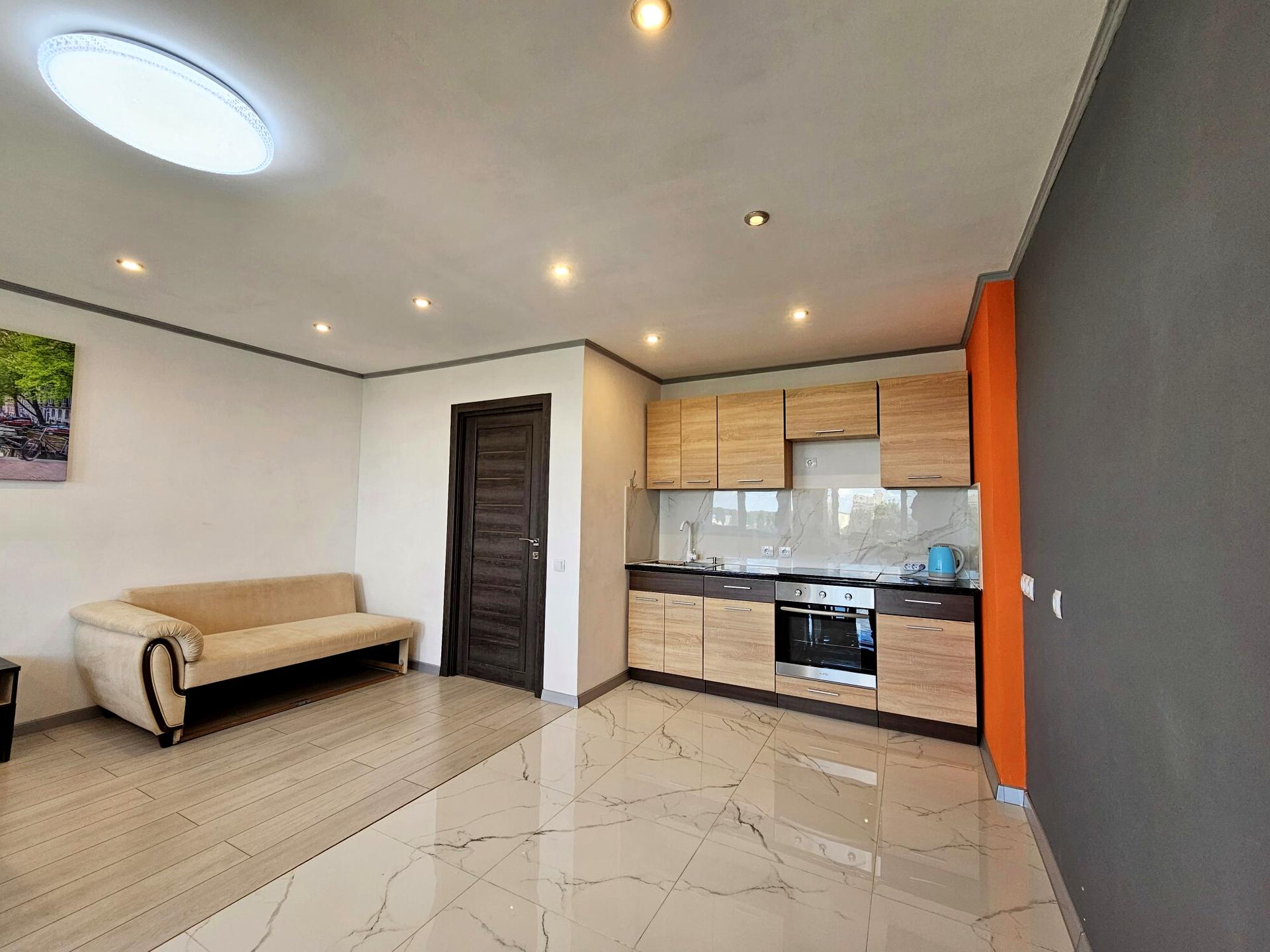 В квартирі 1 кімната, висота стелі 2.8 метра, Технологія будівництва - Монолітно-каркасна, Тип будинку - Спец. проект. Кухонна плита електрична. У квартирі є Телевізор, Кабельне ТБ, Супутникове ТБ, Кондиціонер, Пральна машина, Ванна, Холодильник. Будинок побудований в 2025 році. Загальний стан квартири - З ремонтом. Безбар'єрність: пандус, вхід у будинок на рівні землі, паркувальні місця для осіб з інвалідністю, ліфт, пристосований до крісла колісного, дверні отвори в будинку шириною понад 0.9 м. Гаряча вода - електричний бойлер. Інтернет оптоволоконний. Працює без світла - вода, опалення, інтернет, ліфт. Тип кухні - кухня-студія. Кількість спален: 1. Комісія за послуги 50 %