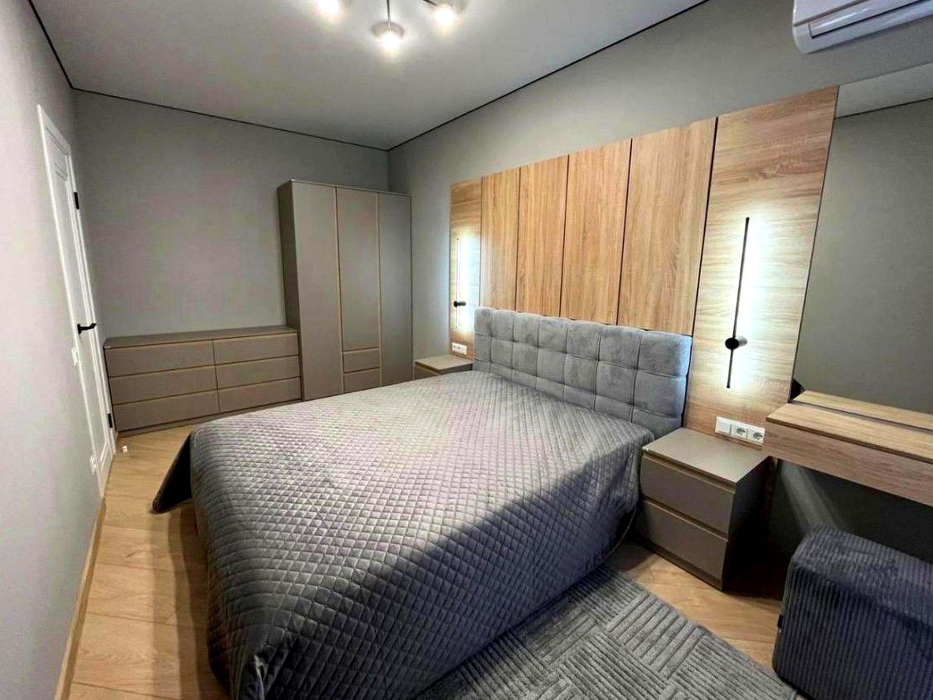 Квартира з авторським дизайнерським ремонтом, повністю укомплектована меблями та технікою: холодильник, варильна панель, духова шафа, пральна машина. Простора кухня 16 м², роздільне планування кімнат, суміжний санвузол.