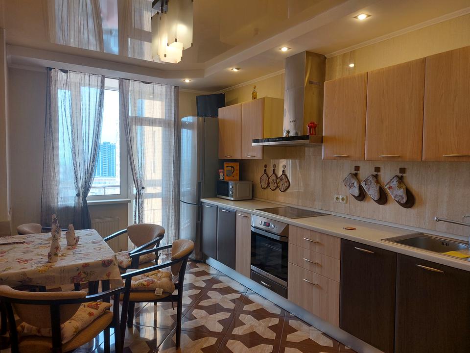 Севастопільська площа. ЖК «Олександрівський» Лобановського 6-у велика, 2-кімнатна квартира, 82/45/15 кв. м, 18/25 поверхового будинку. Сучасні меблі, вбудована кухня, посудомийна машина. Вітальня, спальня, кухня-їдальня, 2 санвузли. Різнорівневе висвітлення. Мебльована, вся побутова техніка: 3 ЖК ТБ, Wi-Fi, 2 кондиціонери, бойлер, посудомийна машина, СМА, холодильник, духова шафа та варильна поверхня, вбудована кухня, великі шафи. Цегляний будинок, презентабельне парадне, в будинку своя котельня. Зручне розташування. розвинена інфраструктура – поруч – ресторани, супермаркет, спортклуби, школа-ліцей. За потреби додатково надаємо місце в підземному паркінгу.