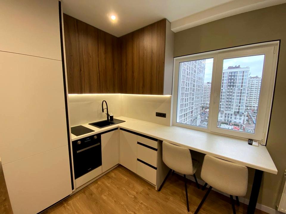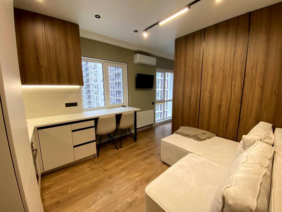 В квартирі 1 кімната, висота стелі 3 метра, Технологія будівництва - Монолітно-каркасна, Тип будинку - Спец. проект. Немає газу, кухонна плита електрична. Немає балкона. У квартирі є Телевізор, Кабельне ТБ, Праска, Підігрів підлоги, Кондиціонер, Пральна машина, Ванна, Холодильник, Мікрохвильовка, Посудомийна машина, Посуд. Будинок побудований в 2024 році. Загальний стан квартири - З ремонтом. Гаряча вода - централізована. Кількість санвузлів: 1. Інтернет дротовий (кабельний). Працює без світла - вода, опалення, інтернет. Тип кухні - кухня-студія. Кількість спален: 1. Комісія за послуги 50 %