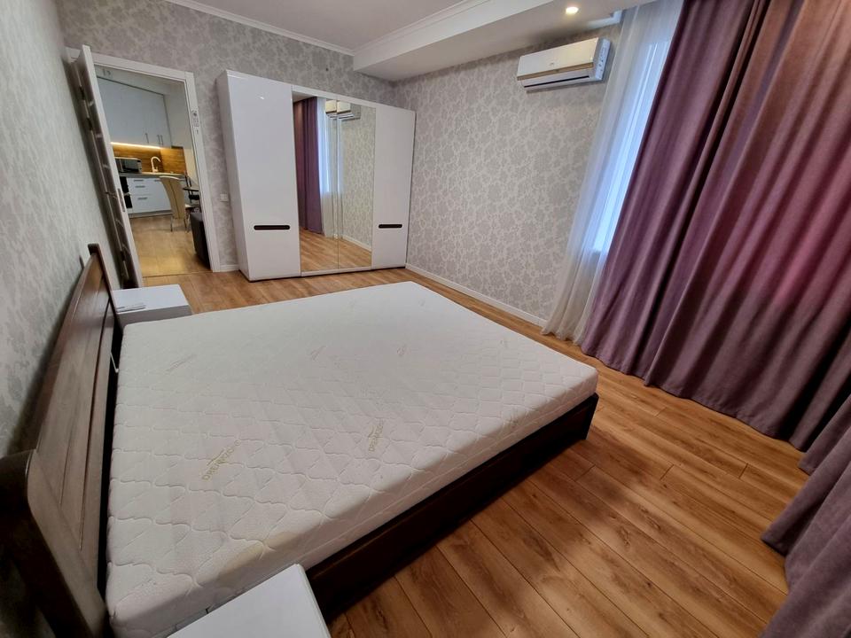 Квартира повністю укомплектована меблями та побутовою технікою: електроплита, духова шафа, холодильник, посудомийна та пральна машини, кондиціонери, бойлер, ТВ, відеодомофон, ліжко (розміром 180*200 см) з ортопедичним матрацом, роутер з гігабітним інтернетом, зворотний осмос.