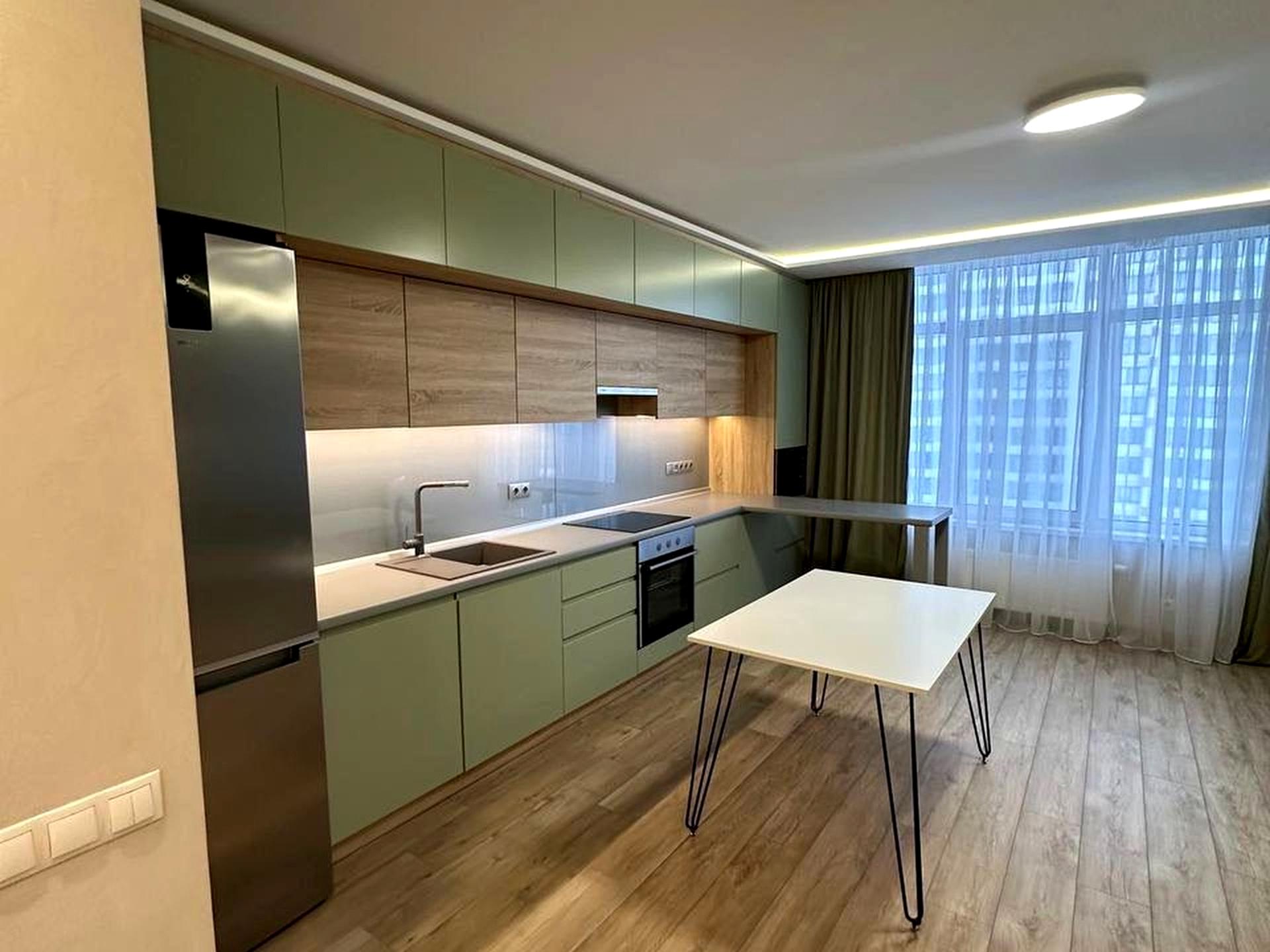 В квартирі 2 кімнати, висота стелі 2.7 метра, Технологія будівництва - Монолітно-каркасна, Тип будинку - Спец. проект. Немає газу, кухонна плита електрична. Немає балкона. У квартирі є Телевізор, Кондиціонер, Пральна машина, Сушильна машина, Душова кабіна, Ванна, Холодильник, Мікрохвильовка, Посудомийна машина, Посуд, Сигналізація. Будинок побудований в 2019 році. Загальний стан квартири - З ремонтом. Безбар'єрність: вхід у будинок на рівні землі. Гаряча вода - електричний бойлер. Кількість санвузлів: 1. Інтернет оптоволоконний. Працює без світла - вода, опалення, інтернет, ліфт. Тип кухні - кухня-студія. Кількість спален: 2. Комісія за послуги 50 %