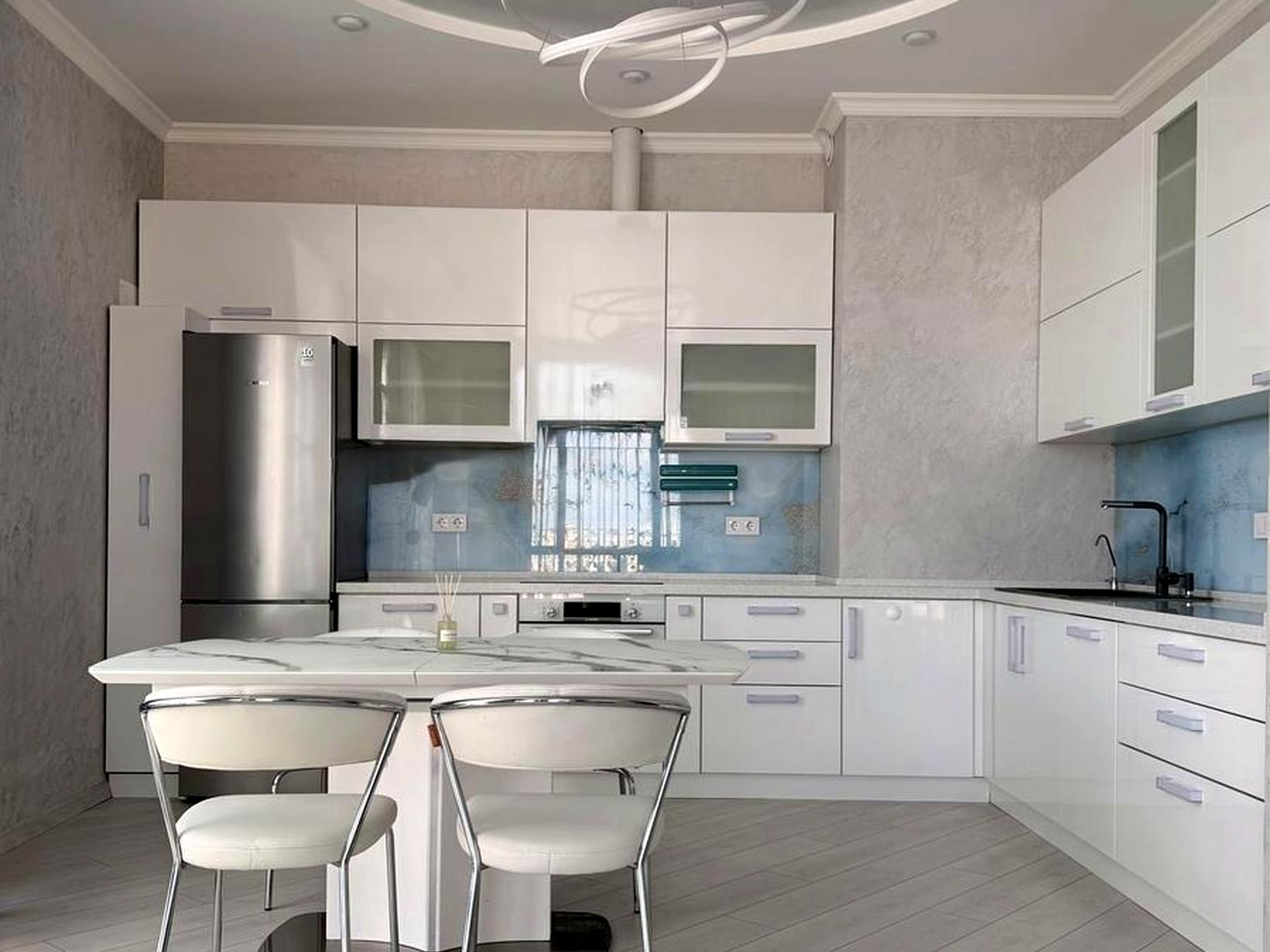 В квартирі 4 кімнати, висота стелі 3 метра, Технологія будівництва - Монолітно-каркасна, Тип будинку - Спец. проект. У квартирі є Кондиціонер, Пральна машина, Холодильник. Будинок побудований в 2019 році. Загальний стан квартири - З ремонтом. Працює без світла - вода, опалення, ліфт. Комісія за послуги 50 %