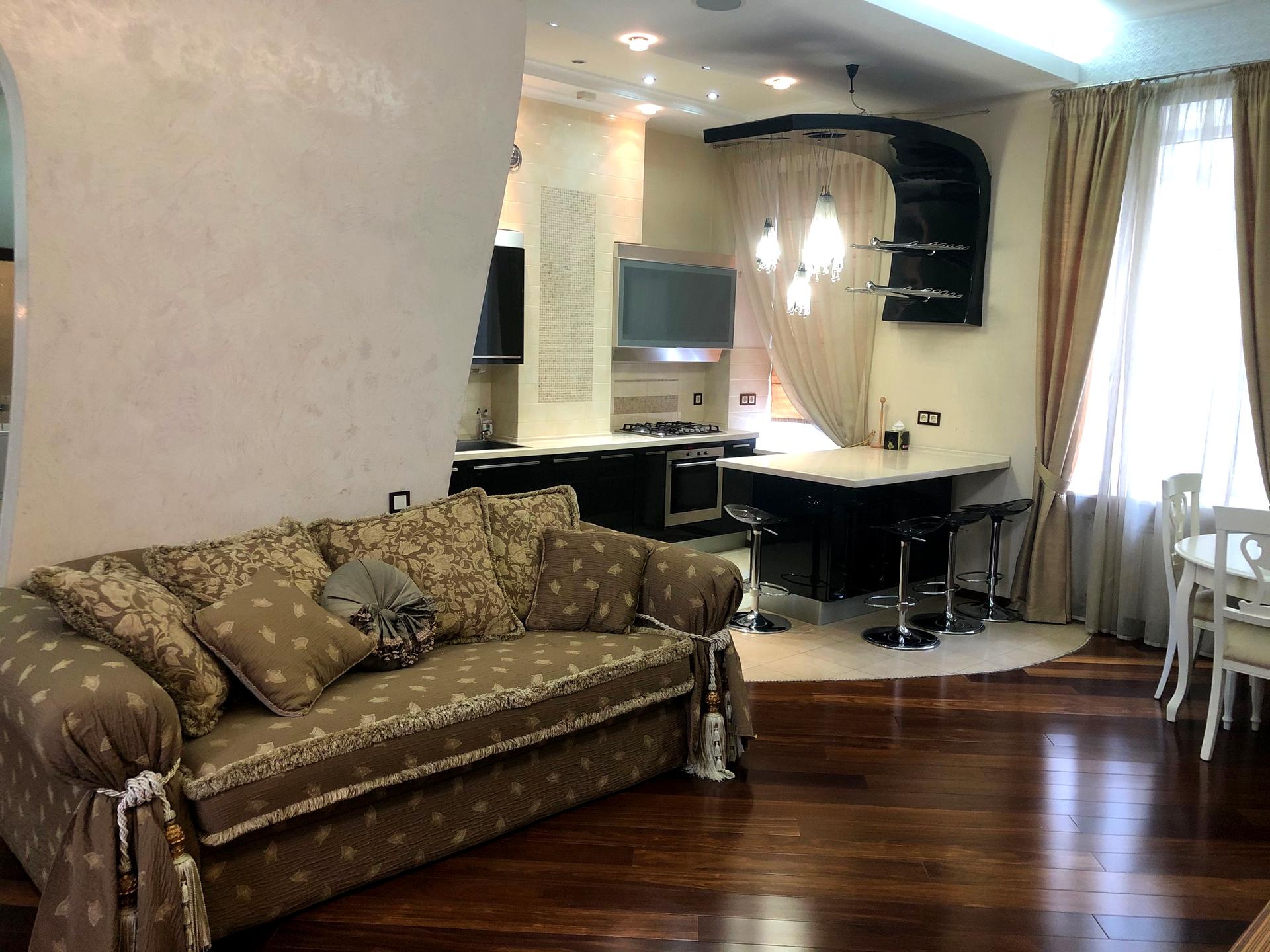 В квартирі 3 кімнати, висота стелі 3.8 метра, Технологія будівництва - Цегляна, Тип будинку - Дореволюційний. Є газ, кухонна плита газова. Є 2 балкони. У квартирі є Телевізор, Кабельне ТБ, Праска, Підігрів підлоги, Кондиціонер, Пральна машина, Ванна, Холодильник, Мікрохвильовка, Посудомийна машина, Посуд, Сигналізація. Будинок побудований в 1914 році. Загальний стан квартири - З ремонтом. Безбар'єрність: вхід у будинок на рівні землі. Гаряча вода - газова колонка. Кількість санвузлів: 1. Працює без світла - вода, газ, опалення, інтернет. Тип кухні - кухня-студія. Кількість спален: 2. Комісія за послуги 25 %