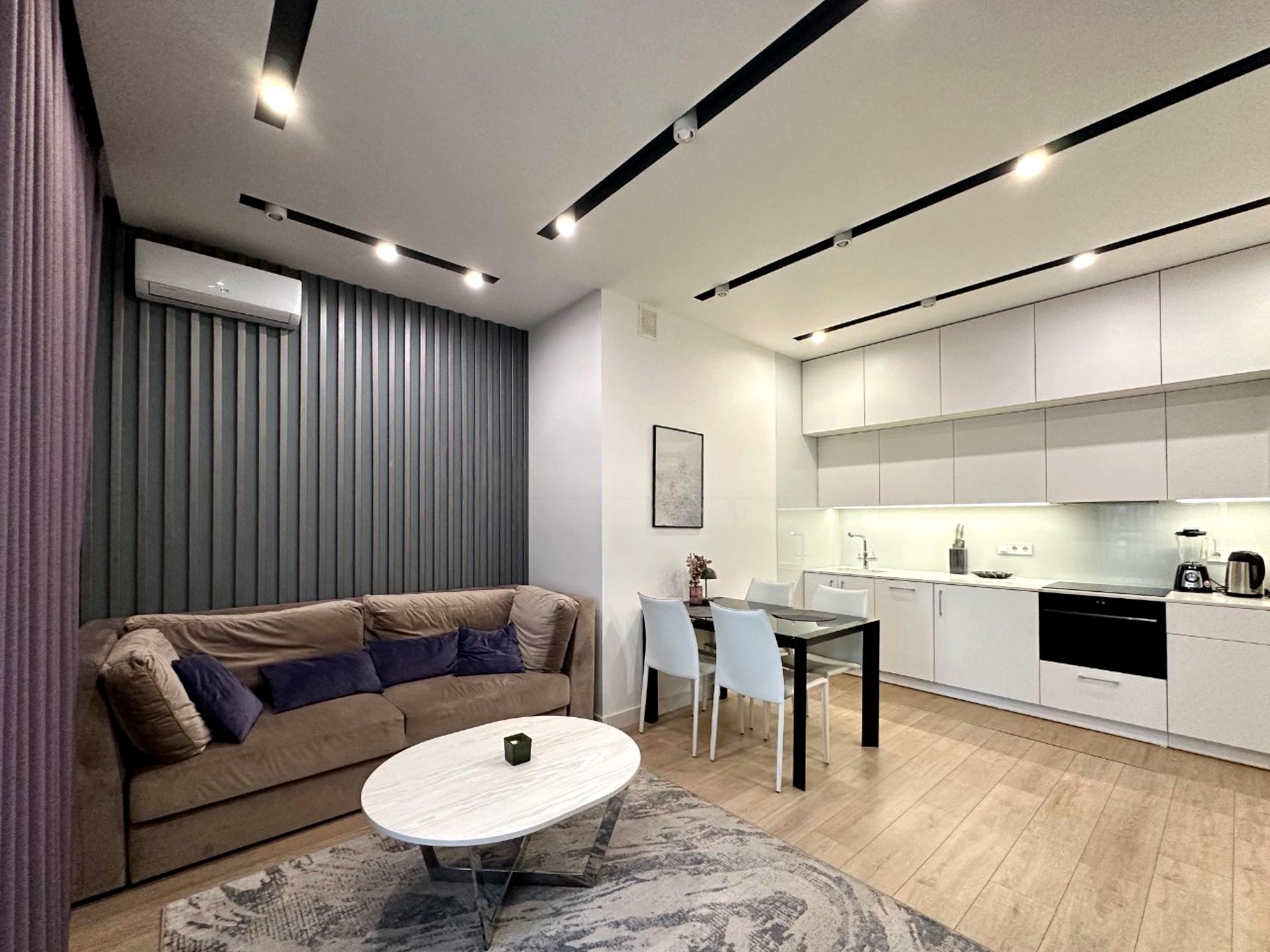 Квартира повністю готова до здачі — дизайнерський ремонт, меблі, техніка, декор в ідеальному стані.