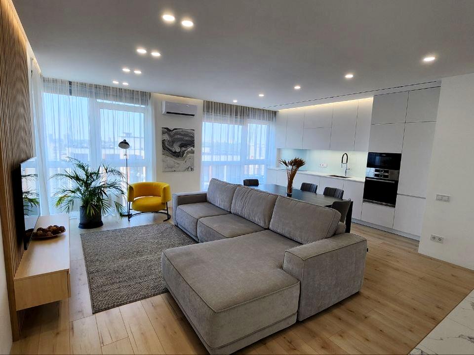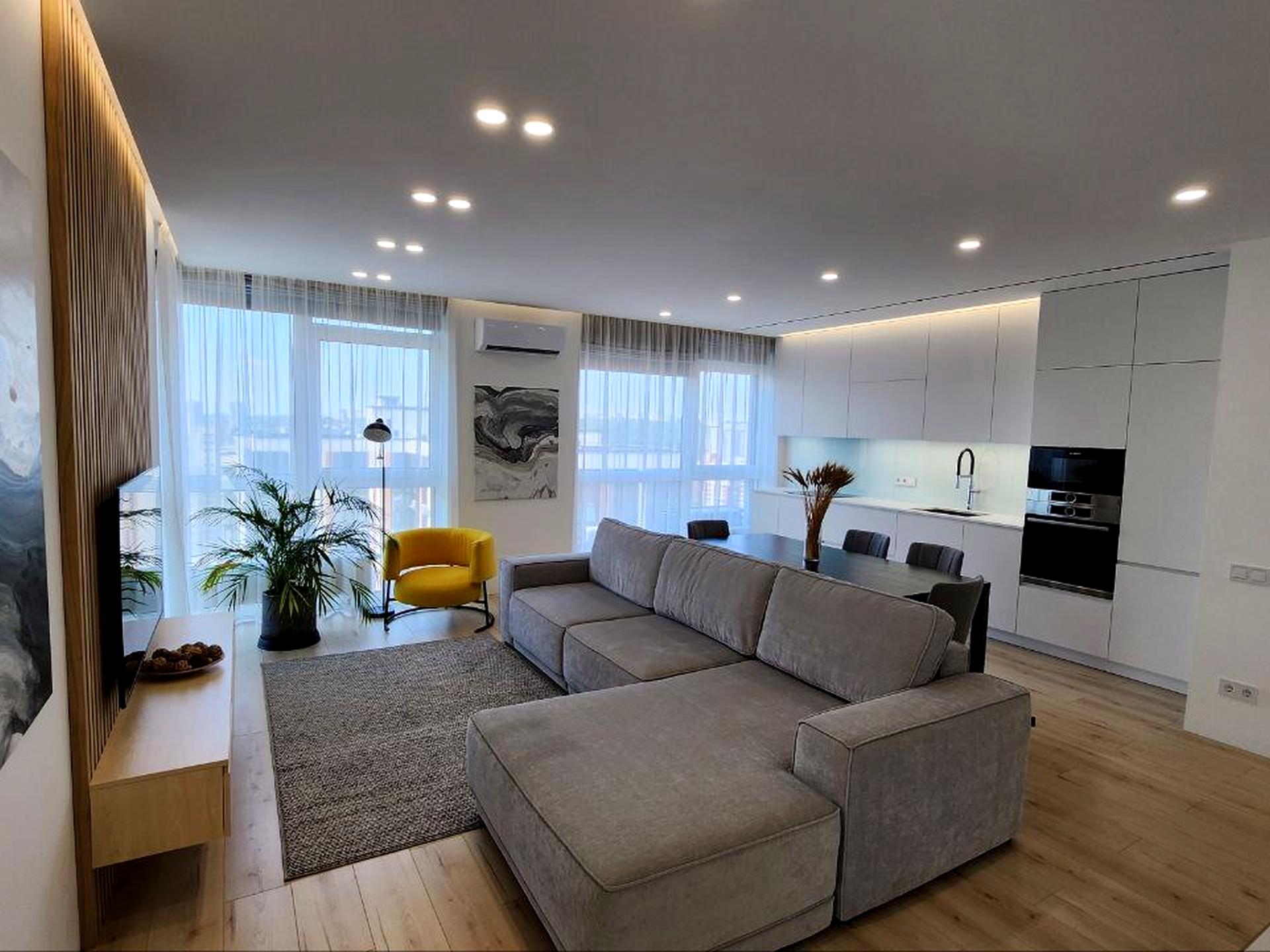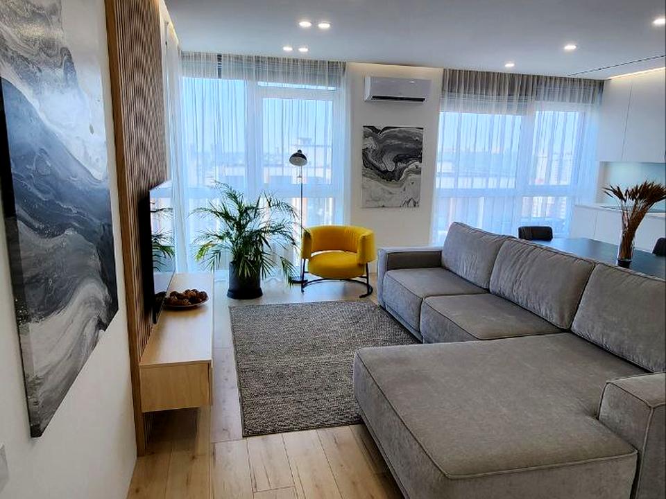 В квартирі 2 кімнати, висота стелі 2.85 метра, Технологія будівництва - Монолітно-каркасна, Тип будинку - Спец. проект. Кухонна плита електрична. У квартирі є Телевізор, Підігрів підлоги, Кондиціонер, Пральна машина, Душова кабіна, Холодильник, Мікрохвильовка, Посудомийна машина. Будинок побудований в 2017 році. Загальний стан квартири - З ремонтом. Кількість санвузлів: 2. Тип кухні - кухня-студія. Кількість спален: 2. Комісія за послуги 50 %