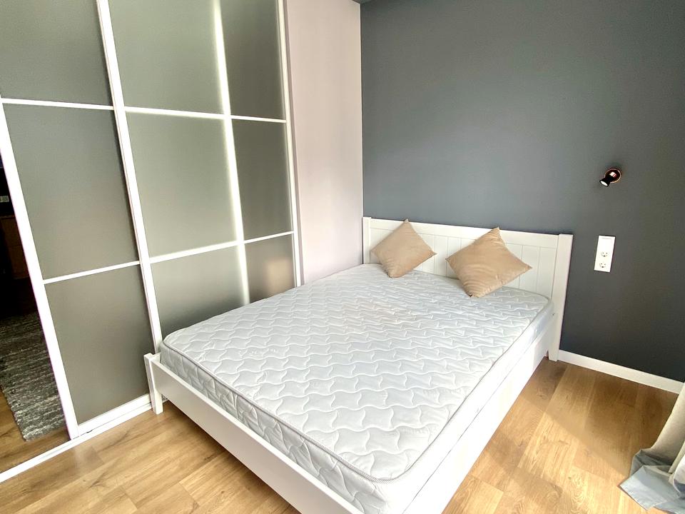 В спальній кімнаті робоче місце, шафа, двоспальне ліжко з ортопедичним матрацом.