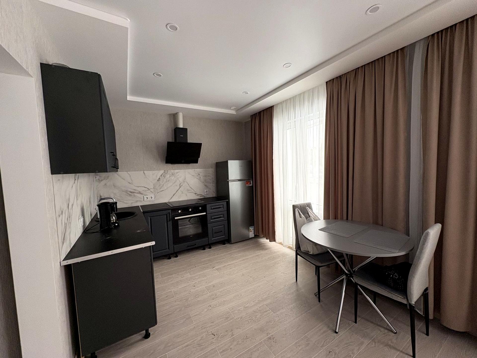 В квартирі 1 кімната, Тип будинку - Спец. проект. Немає газу, кухонна плита електрична. Є балкон. Будинок побудований в 2024 році. Загальний стан квартири - З ремонтом. Гаряча вода - електричний бойлер. Кількість санвузлів: 1. Тип кухні - кухня-студія. Кількість спален: 1. Комісія за послуги 50 %