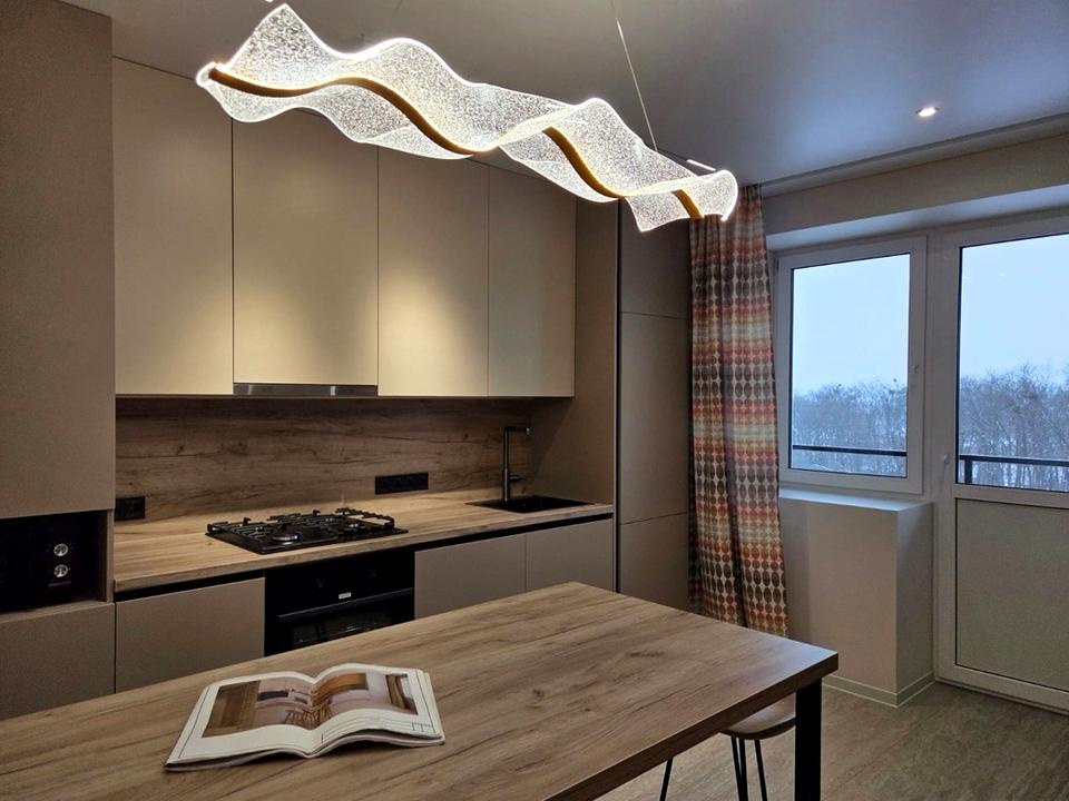 Квартира 50/13/21,5/10/5,5 укомплектована всіма необхідними меблями та технікою: посудомийна машина, мікрохвильова піч, газова плита, електрична духовка, холодильник, пральна машина.