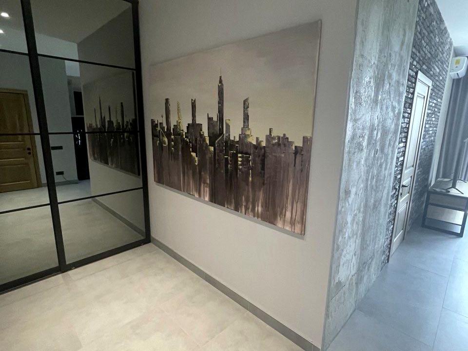Площа квартири становить 56 м2. Вона має окрему спальню та сучасний ремонт у сірих тонах, що надає приміщенню стильний та затишний вигляд. Квартира знаходиться на 9 поверсі, що дозволяє насолоджуватися чудовим видом з вікон.