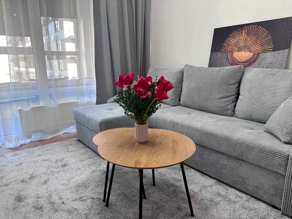 - Зона відпочинку з розкладним диваном та журнальним столиком