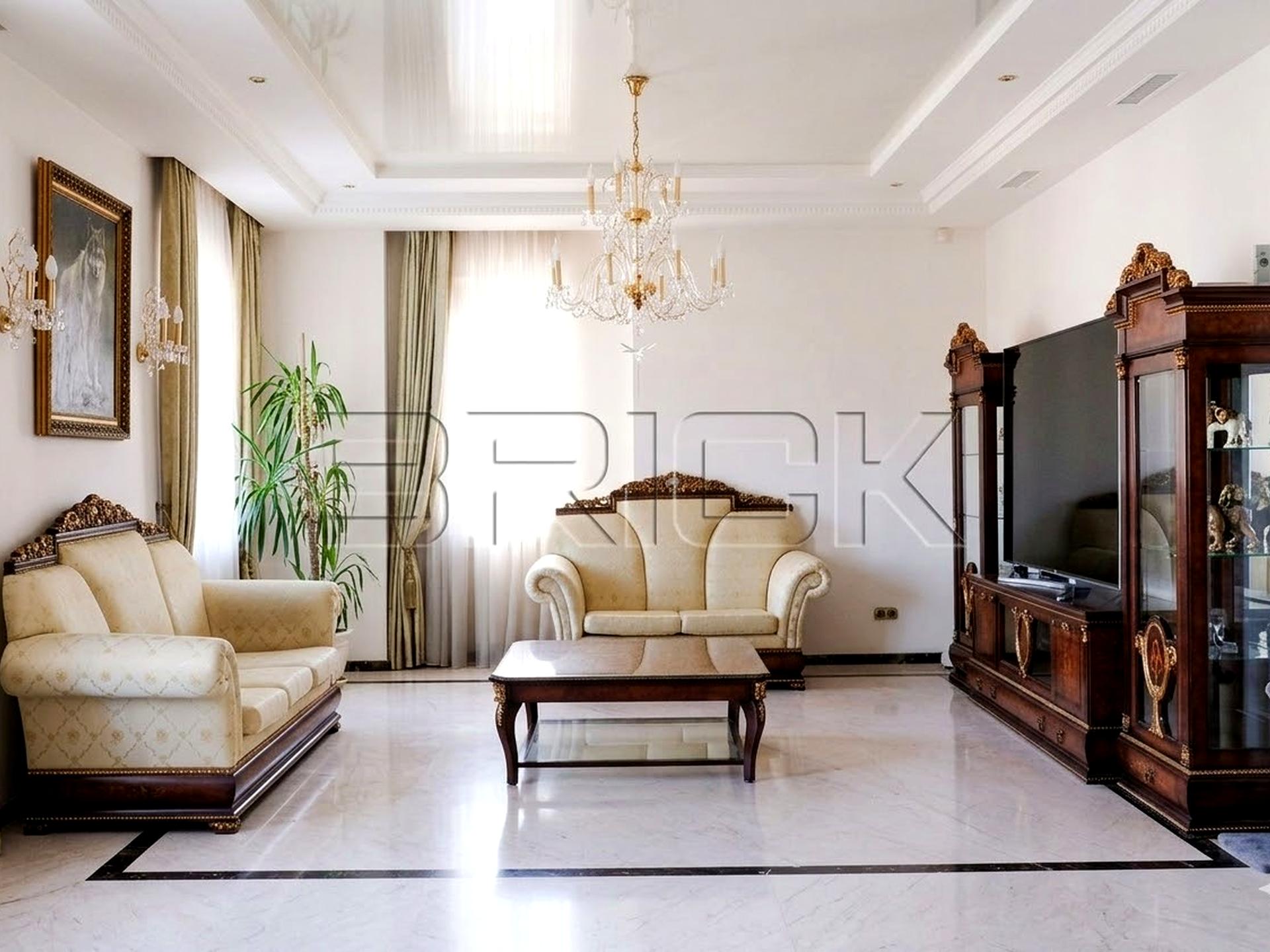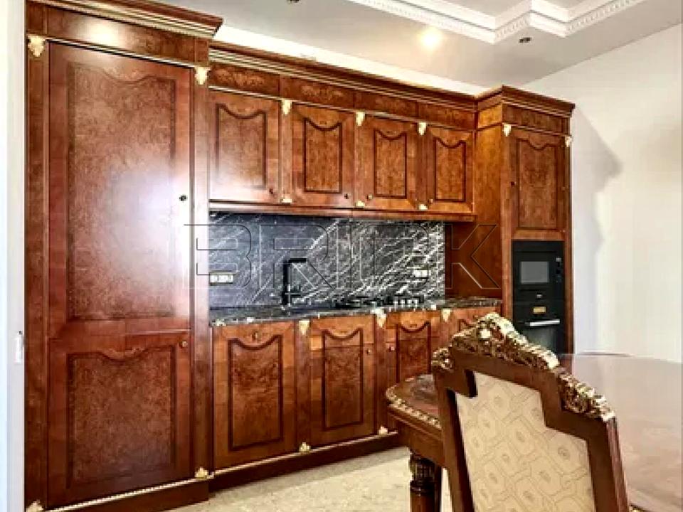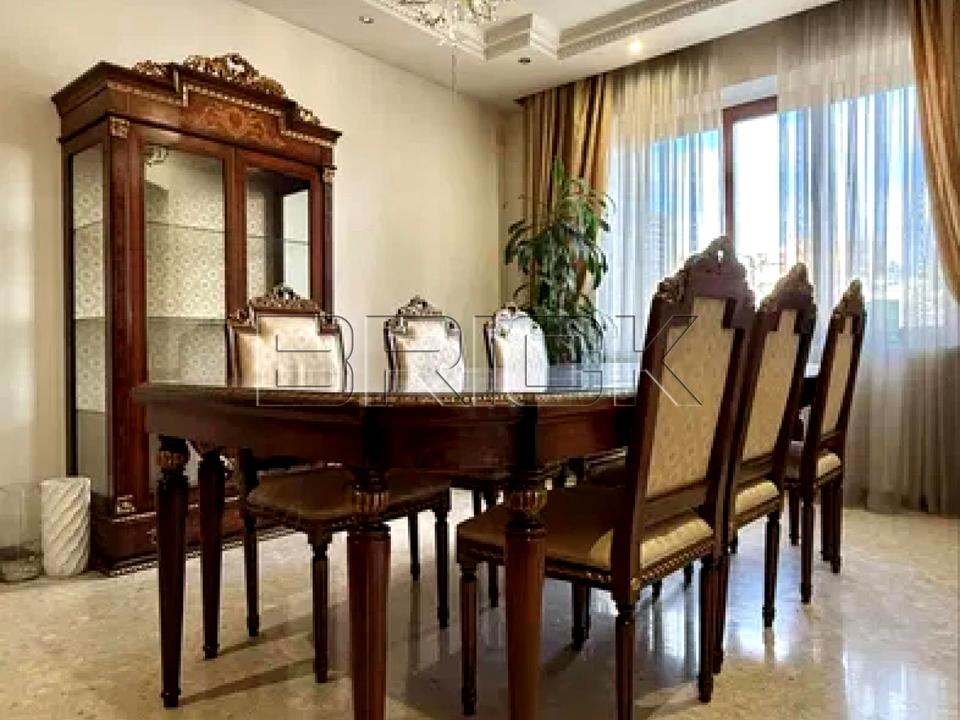 Простора квартира в центрі Києва з авторським ремонтом у стилі сучасної класики з елементами модерну. Інтер’єр виконаний із використанням натуральних матеріалів: мармуру, масиву ясена, дуба та червоного дерева, керамограніту. Квартира світла, з високими стелями 3 м та продуманим плануванням.