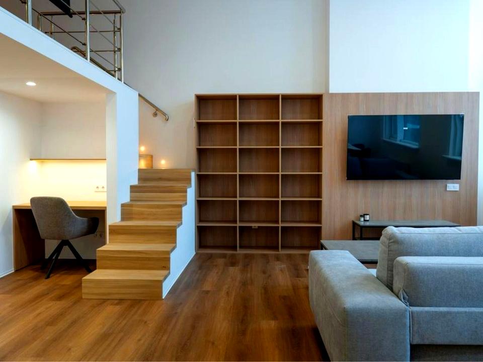 • кухня, інтегрована у простір, повністю вбудована техніка