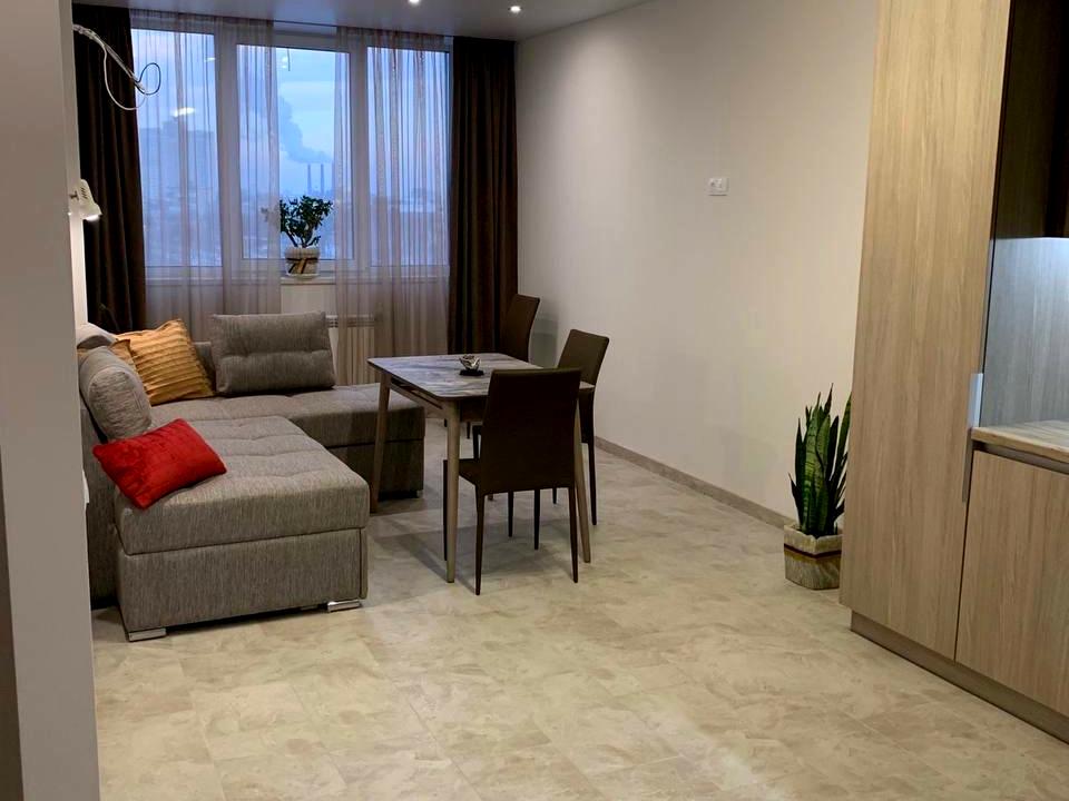 В квартирі 2 кімнати, Технологія будівництва - Монолітно-каркасна. Планування кімнат Роздільне. Немає газу, кухонна плита електрична. Немає балкона. У квартирі є Кабельне ТБ, Кондиціонер, Пральна машина. Будинок побудований в 2018 році. Загальний стан квартири - З ремонтом. Гаряча вода - централізована. Кількість санвузлів: 1. Інтернет дротовий (кабельний). Працює без світла - вода, опалення, інтернет, ліфт. Тип кухні - кухня-студія. Кількість спален: 1. Комісія за послуги 50 %