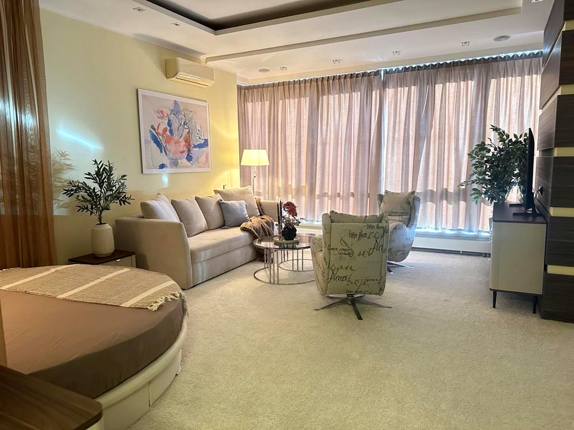 В квартирі 1 кімната, висота стелі 3.3 метра, Технологія будівництва - Монолітно-каркасна, Тип будинку - Спец. проект. У квартирі є Телевізор, Кабельне ТБ, Супутникове ТБ, Праска, Підігрів підлоги, Кондиціонер, Пральна машина, Сушильна машина, Душова кабіна, Ванна, Холодильник, Мікрохвильовка, Посудомийна машина, Сигналізація. Будинок побудований в 2012 році. Загальний стан квартири - З ремонтом. Комісія за послуги 50 %