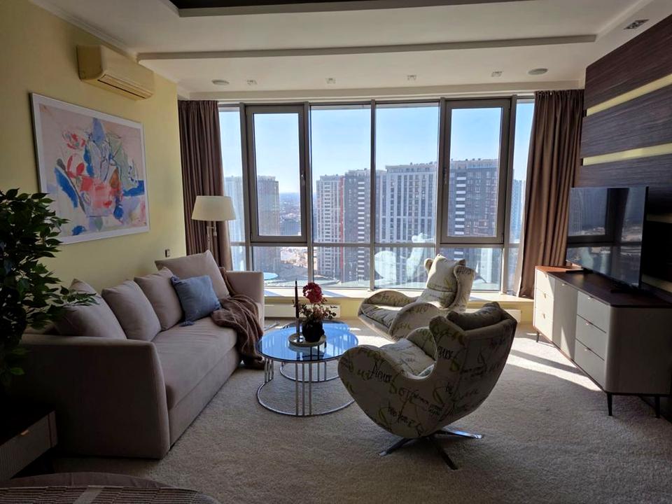 В квартирі виконаний дорогий дизайнерський ремонт, всі меблі та техніка провідних європейських брендів. Всі зручності: джакузі, окрема душова, гардеробна, бойлер, прально-сушильна машина, посудомийка, кавоварка, кондиціонер, тепла підлога, осмос,мікрохвильовка, праска, пилосос, ТВ, велике двоспальне ліжко, розкладний диван, крісла, охорона, посуд та багато іншого. В будинку передбачено резервне живлення на ліфти, опалення, насоси на воду, інтернет, освітлення. В квартирі встановлена система резевного живлення Bluettі 3кВт.