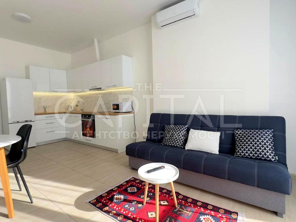 - Простора кухня-вітальня з розкладним диваном;