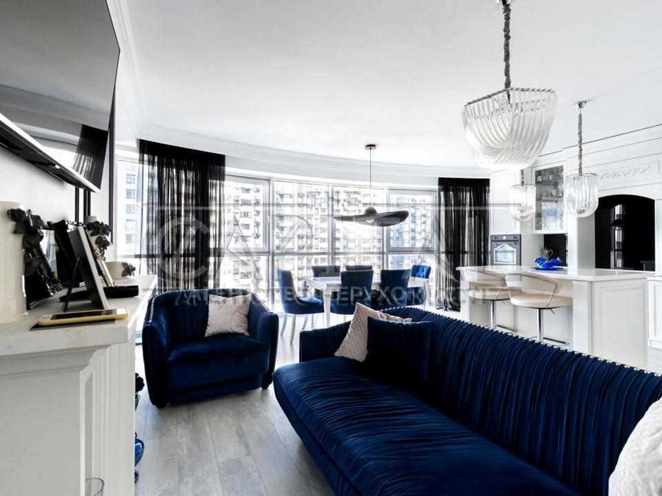Це простора трьохкімнатна квартира площею 125 м², розташована на 11 поверсі 25-поверхового будинку, з неймовірним виглядом на Дніпро та міські панорами.