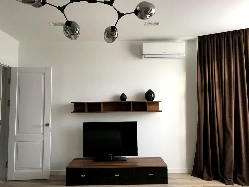 Перша здача в оренду. Світла, простора квартира, з окремою гардеробною кімнатою.Кухня-студія та спальна кімната. Балкон з видом на парк і місто. Укомплектована всією необхідною технікою та меблями.