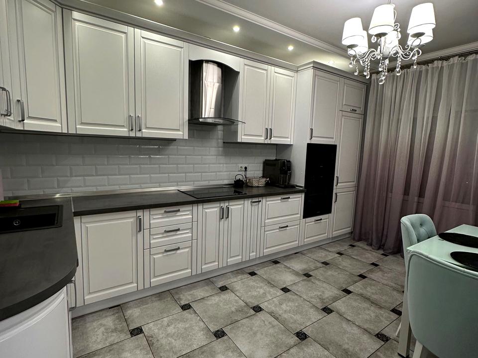 кухні з усією необхідною технікою (холодильник, посудомийна машина, індукційна поверхня, витяжка, духовка, кухонний комбайн), посудом, каструлями та приборами до щоденного користування , столом і кріслами.