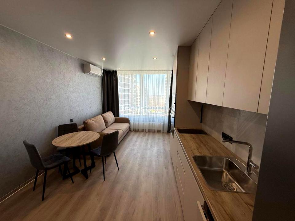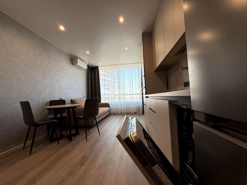 В квартирі 1 кімната, висота стелі 2.75 метра, Технологія будівництва - Монолітно-каркасна, Тип будинку - Спец. проект. Немає газу, кухонна плита електрична. Немає балкона. У квартирі є Кондиціонер, Пральна машина, Сушильна машина, Ванна, Холодильник, Посудомийна машина. Будинок побудований в 2025 році. Загальний стан квартири - З ремонтом. Безбар'єрність: вхід у будинок на рівні землі. Гаряча вода - електричний бойлер. Кількість санвузлів: 1. Інтернет бездротовий. Працює без світла - вода, опалення, ліфт. Тип кухні - кухня-студія. Кількість спален: 1. Немає підземного паркінгу, доступного як укриття. Інфраструктура території: дитячий майданчик, спортивний майданчик, виокремлена зона для вигулу тварин, двір без авто. Без комісії