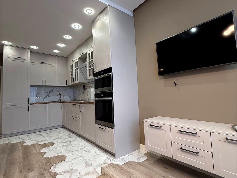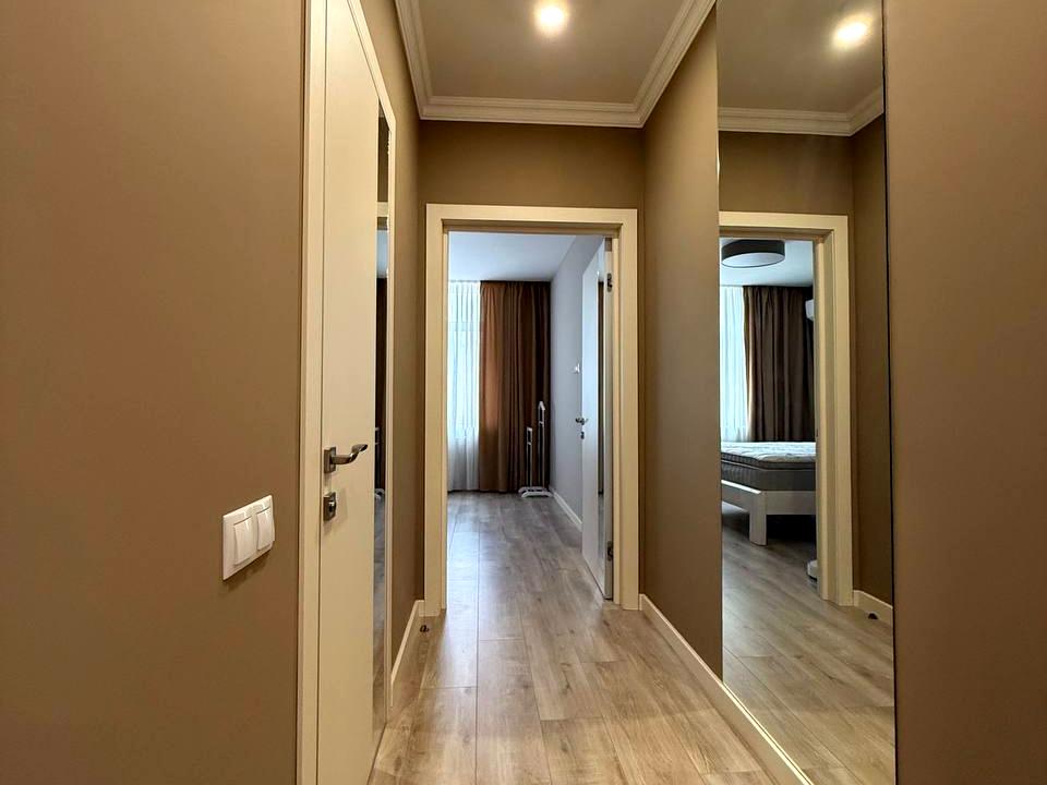 Квартира надзвичайно тепла та затишна. Планування включає велику кухню-вітальню, дві окремі спальні, просторий засклений балкон, гардеробну кімнату та два санвузли. У квартирі багато місць для зберігання та є вся необхідна побутова техніка: духова шафа, мікрохвильова піч, варильна поверхня, посудомийна машина, чайник, тостер, телевізор, бойлер, пральна машина, робот-пилосос, охоронна система Ajax, кондиціонери в кожній кімнаті.