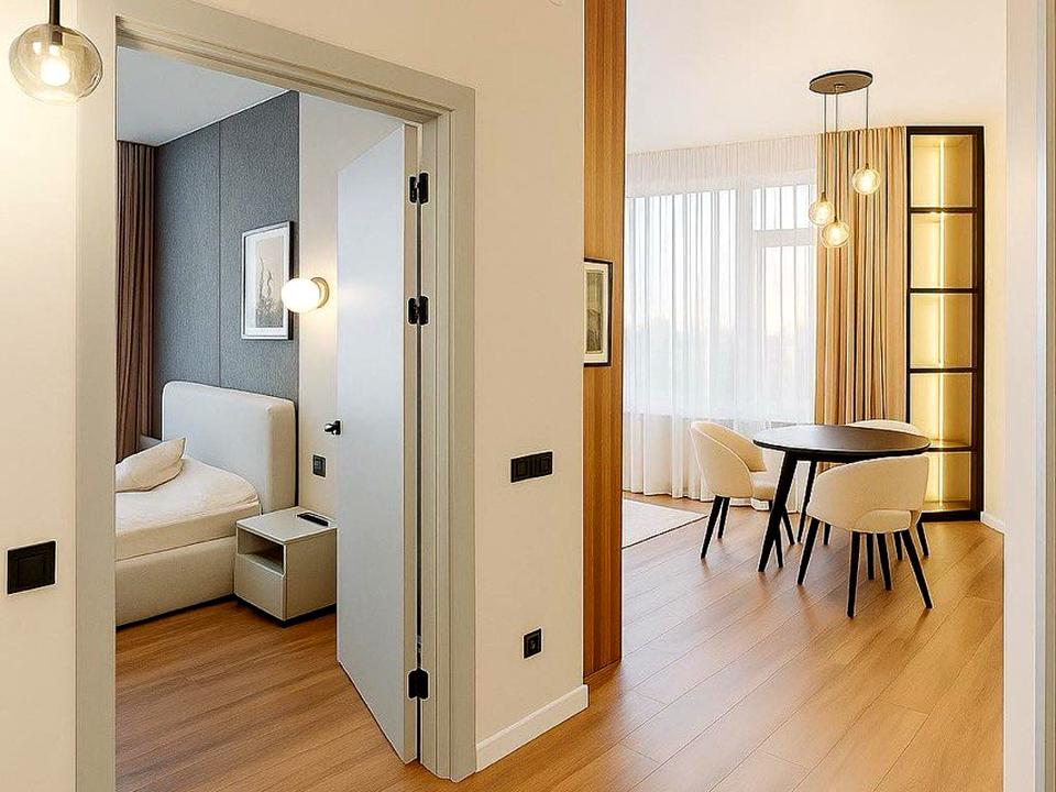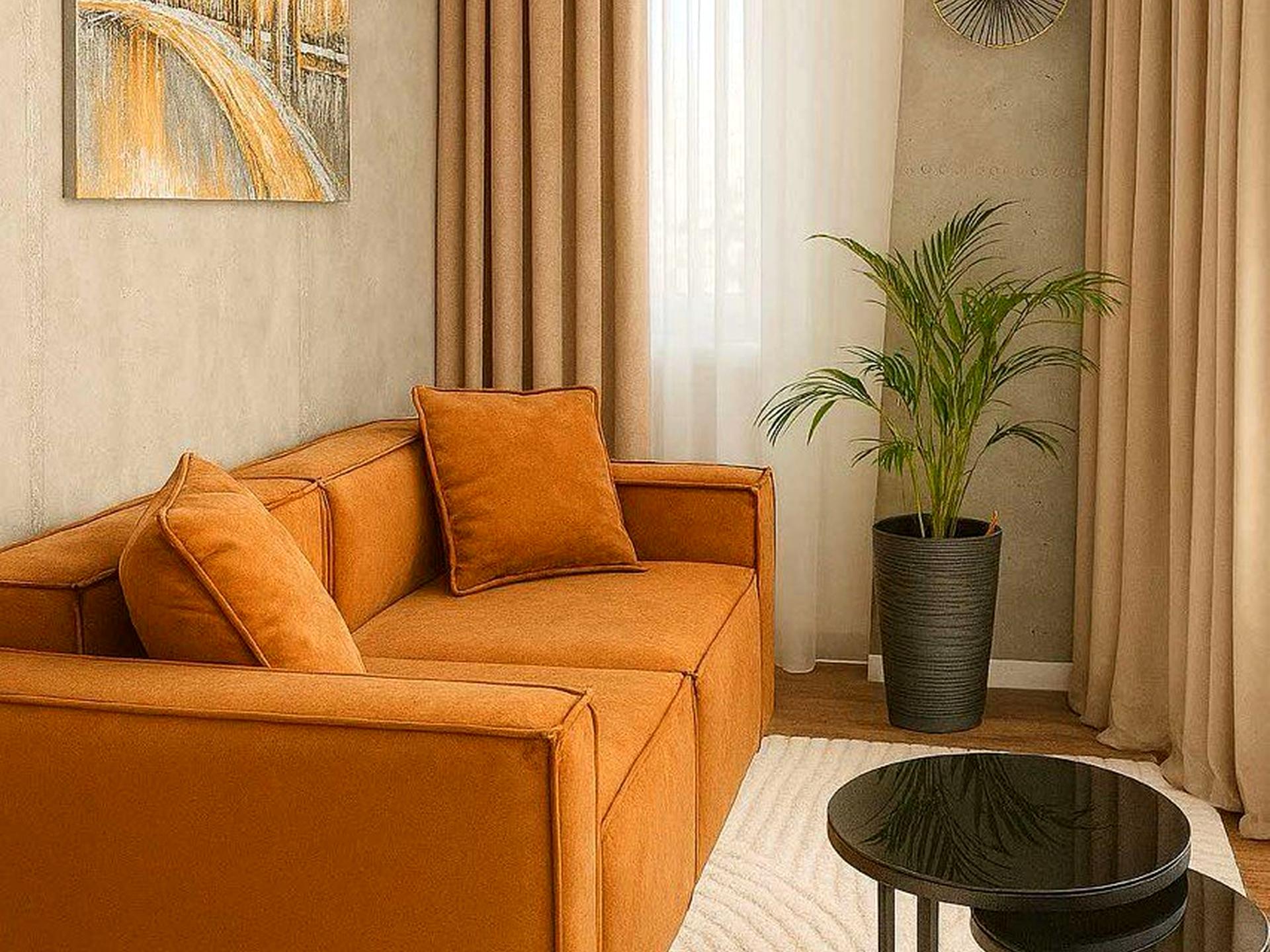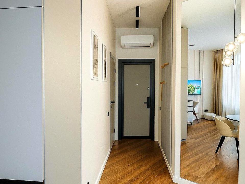 Укомплектована всіма необхідними меблями та побутовою технікою від європейських виробників. Пральна машина з опцією сушки. Ліжко з підйомним механізмом, з місцем для зберігання речей. Зроблена шумоізоляція по всьому периметру квартири.