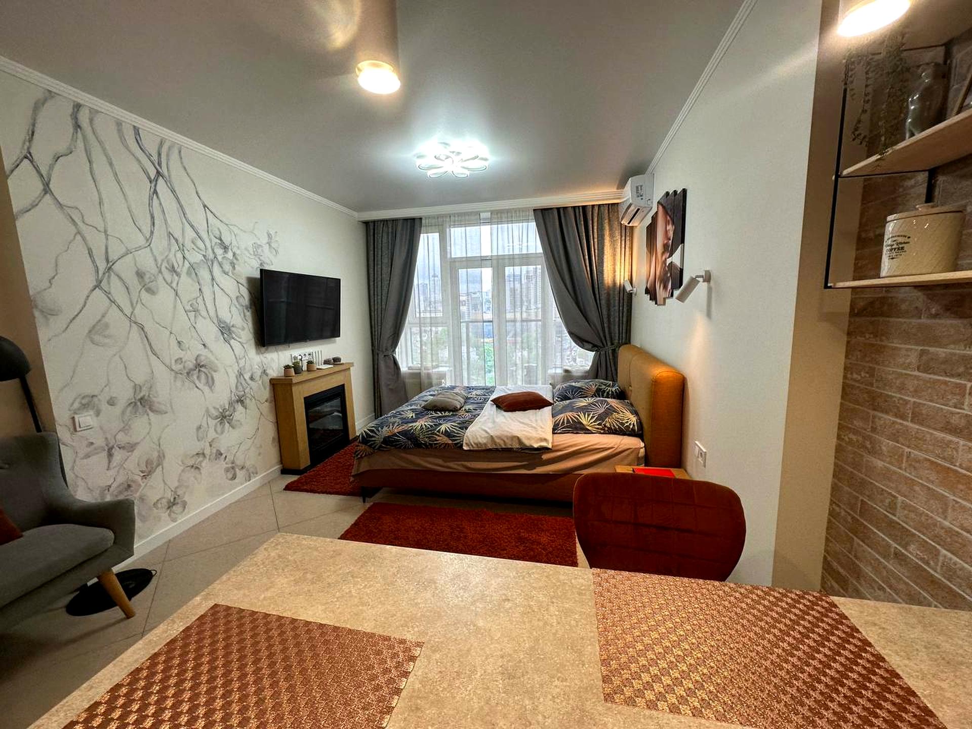В квартирі 1 кімната, Технологія будівництва - Монолітно-каркасна. Планування кімнат Суміжне. Немає газу. У квартирі є Телевізор, Праска, Кондиціонер, Пральна машина, Душова кабіна, Холодильник, Мікрохвильовка. Загальний стан квартири - З ремонтом. Гаряча вода - електричний бойлер. Інтернет дротовий (кабельний). Комісія за послуги 50 %