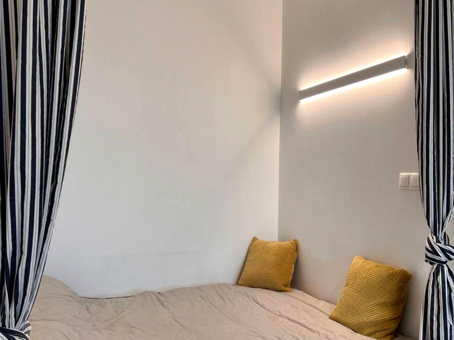 У вітальні є розкладний диван та ліжко 1.60 на 1.90. В другій кімнаті є ліжко 1,20 на 2 метра. Є постільні комплекти, ковдри, подушки.