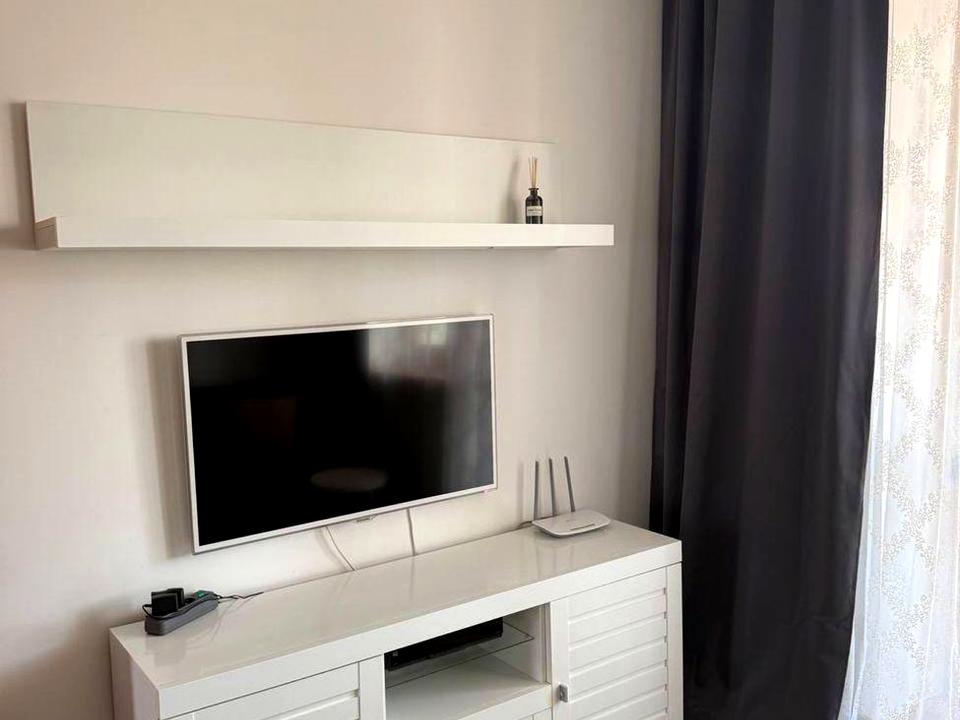 Квартира повністю облаштована меблями та технікою (духовка на пару + мікрохвильовка (два в одному), газова плита, пральна машина, телевізор, холодильник, два кондиціонери, домофон, пилосос, утюг). Також є прасувальна дошка, швабра.
