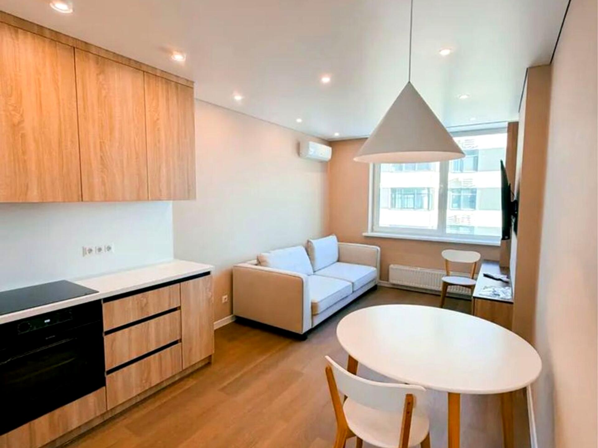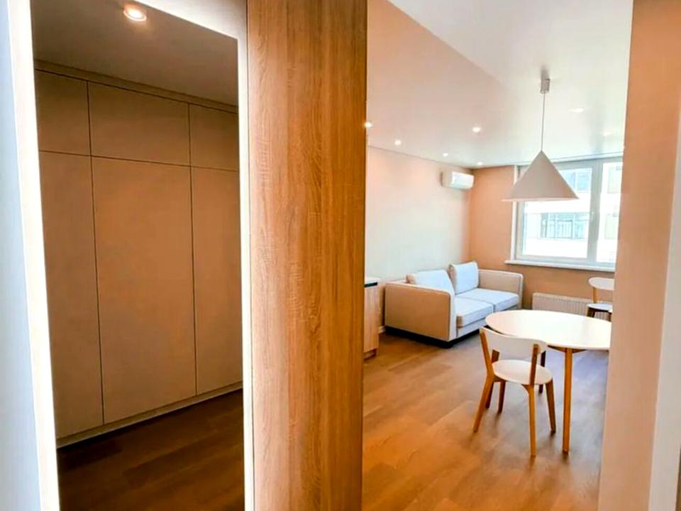 В квартирі 2 кімнати, висота стелі 2.7 метра, Технологія будівництва - Блочна, Тип будинку - Спец. проект. У квартирі є Телевізор, Кондиціонер, Пральна машина, Холодильник, Мікрохвильовка. Будинок побудований в 2023 році. Загальний стан квартири - З ремонтом. Працює без світла - вода, опалення, ліфт. Комісія за послуги 50 %