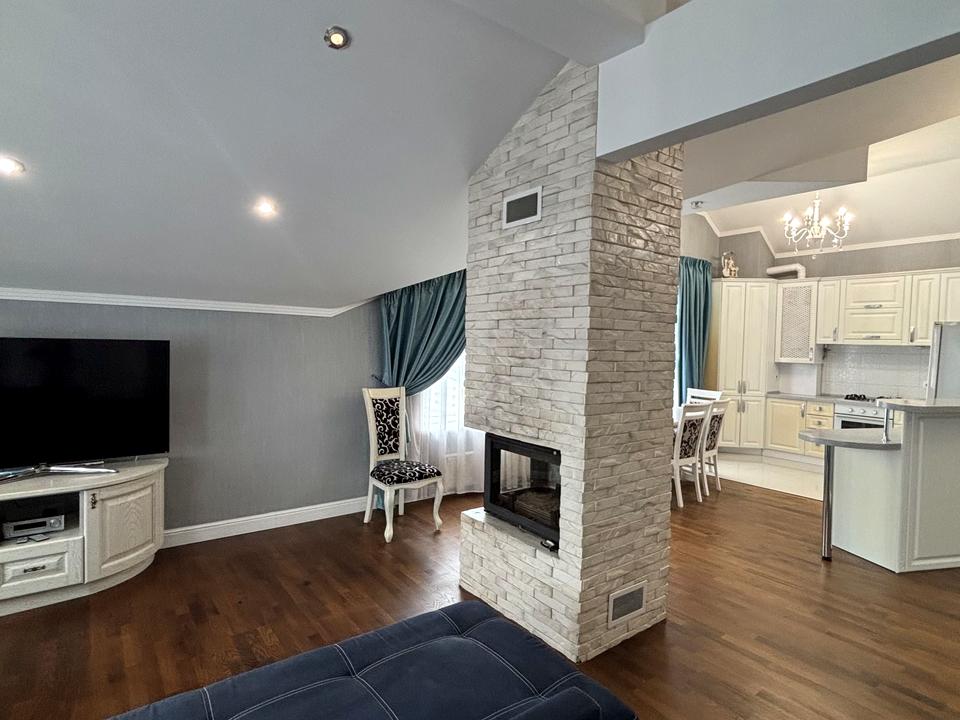 В квартирі 3 кімнати, висота стелі 3 метра, Технологія будівництва - Панельна, Тип будинку - Спец. проект. Є газ, кухонна плита газова. У квартирі є Телевізор, Кабельне ТБ, Підігрів підлоги, Камін, Кондиціонер, Пральна машина, Душова кабіна, Ванна, Холодильник, Мікрохвильовка, Посудомийна машина. Будинок побудований в 2015 році. Загальний стан квартири - З ремонтом. Безбар'єрність: пандус. Гаряча вода - газовий котел. Кількість санвузлів: 2. Інтернет оптоволоконний. Працює без світла - вода, газ, опалення, інтернет. Тип кухні - кухня-студія. Кількість спален: 3. Інфраструктура території: дитячий майданчик, спортивний майданчик, двір без авто. Комісія за послуги 50 %