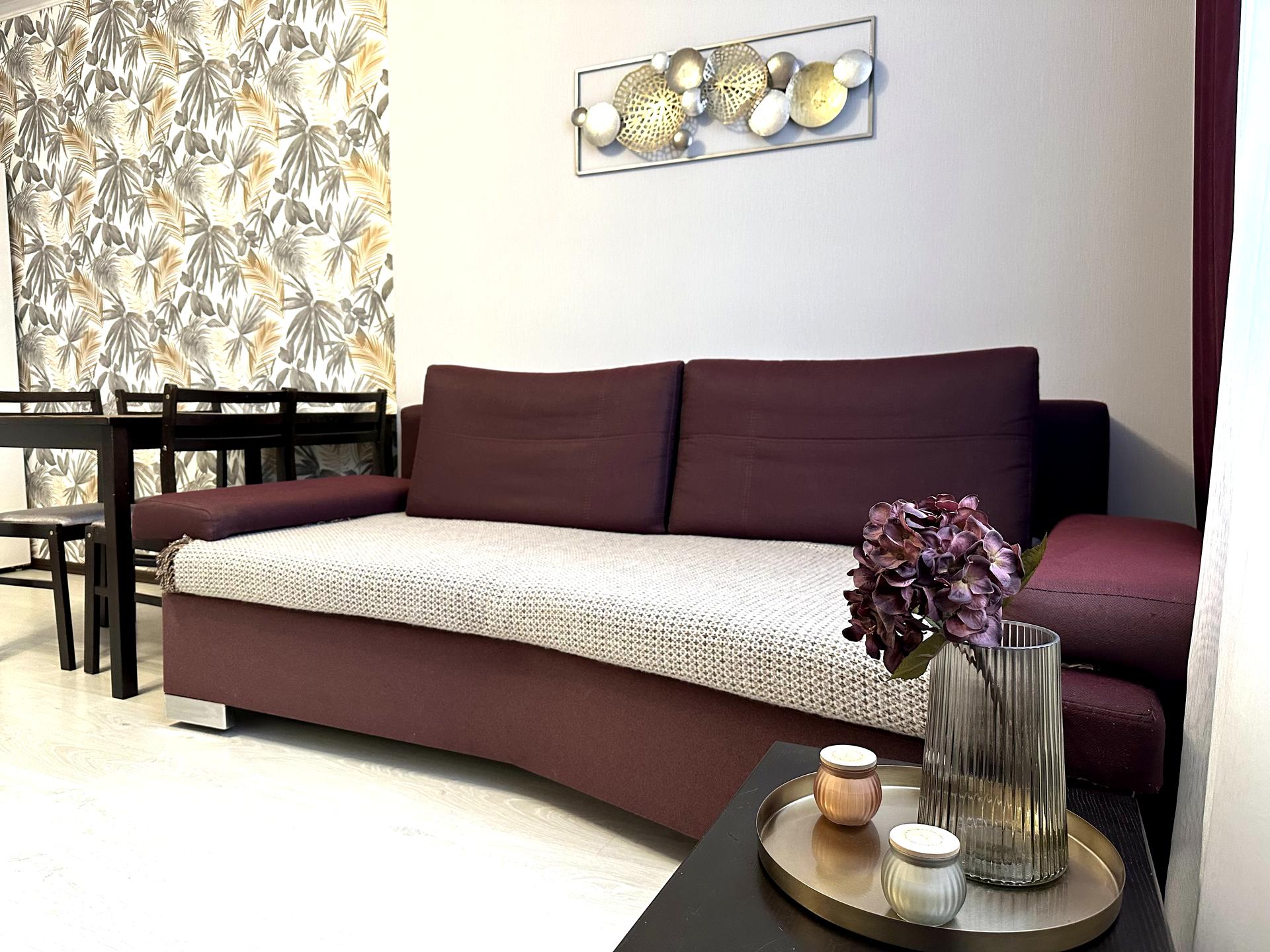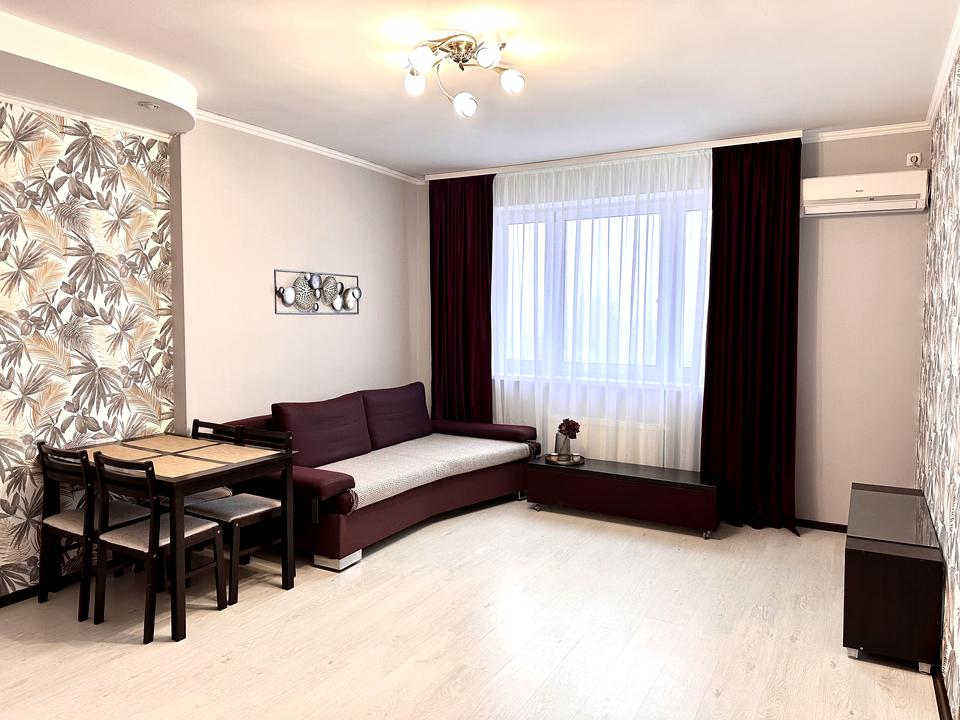 Квартира з якісним ремонтом, зонована на велику кухню-вітальню з двоспальним диваном, та окрему спальну кімнату, великий гардероб, обладнана всією необхідною технікою.