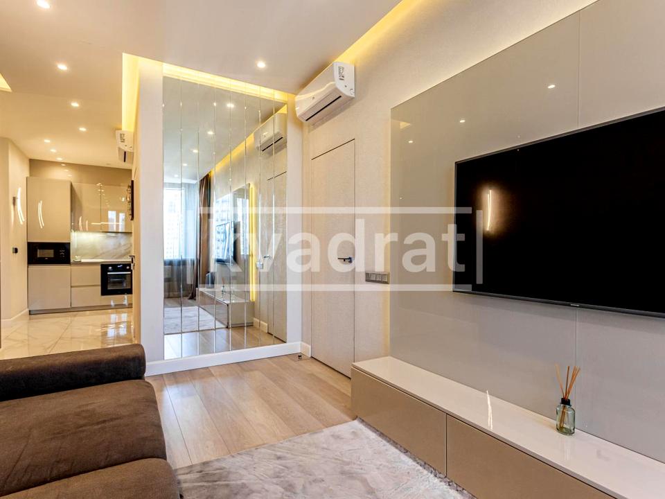 В квартирі 2 кімнати, висота стелі 3.08 метра, Технологія будівництва - Монолітно-каркасна, Тип будинку - Спец. проект. Є газ, кухоння плита комбінована. Є балкон. У квартирі є Телевізор, Кабельне ТБ, Супутникове ТБ, Праска, Підігрів підлоги, Камін, Кондиціонер, Пральна машина, Сушильна машина, Душова кабіна, Ванна, Холодильник, Мікрохвильовка, Посудомийна машина, Посуд, Сигналізація, Сейф. Будинок побудований в 2016 році. Загальний стан квартири - З ремонтом. Безбар'єрність: пандус, вхід у будинок на рівні землі, дверні отвори в будинку шириною понад 0.9 м, паркувальні місця для осіб з інвалідністю, ліфт, пристосований до крісла колісного. Гаряча вода - електричний бойлер. Кількість санвузлів: 1. Інтернет оптоволоконний. Працює без світла - вода, газ, опалення, інтернет, ліфт, резервне живлення квартири (акумулятори). Тип кухні - кухня-студія. Кількість спален: 1. Є підземний паркінг, доступний як укриття. Інфраструктура території: дитячий майданчик, спортивний майданчик, виокремлена зона для вигулу тварин. Комісія за послуги 50 %