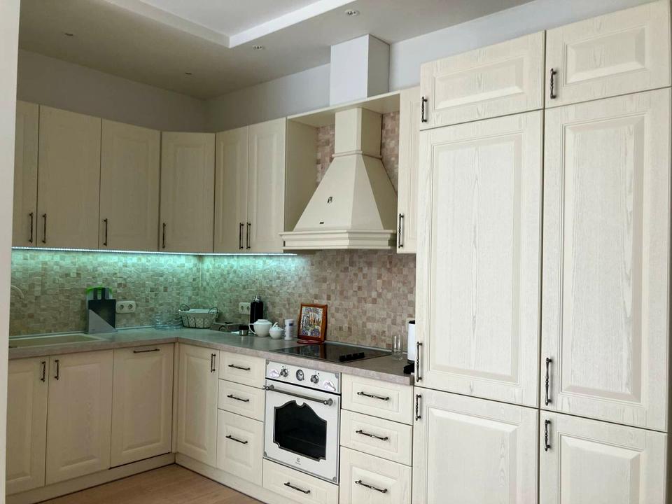 В квартирі 3 кімнати, висота стелі 3.02 метра, Технологія будівництва - Цегляна, Тип будинку - Спец. проект. Немає газу, кухонна плита електрична. Є балкон. У квартирі є Телевізор, Кабельне ТБ, Кондиціонер, Пральна машина, Ванна, Холодильник, Мікрохвильовка, Посудомийна машина, Посуд. Будинок побудований в 2016 році. Загальний стан квартири - З ремонтом. Гаряча вода - електричний бойлер. Кількість санвузлів: 2. Тип кухні - кухня-студія. Кількість спален: 2. Комісія за послуги 50 %